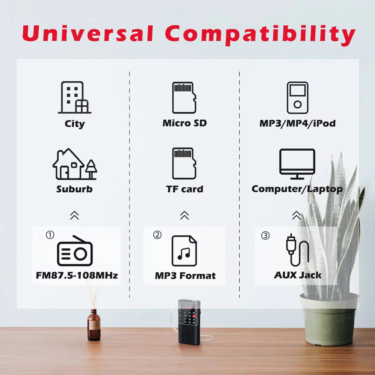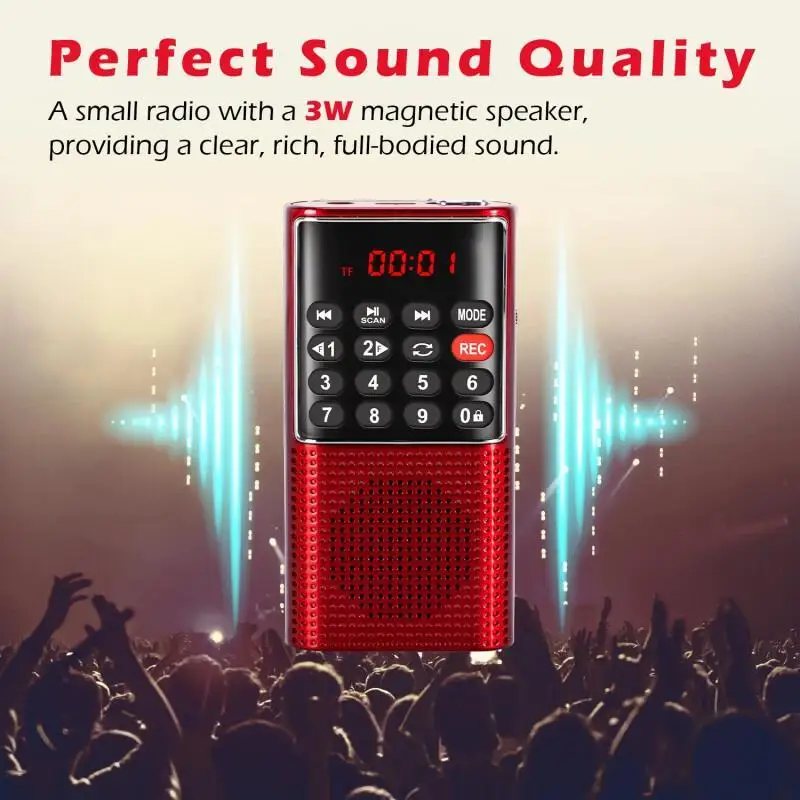 ♥ Perfect Sound Quality: In an era of rapid change, it's nice to know some things never change. Radio broadcasts rock even today. This digital pocket radio supporting standard 3.5mm headphone jack will bring you back to your younger years. With built-in 3W high-quality magnetic speaker featured as reliable deep bass, smooth treble and clear sound, you could luxuriate in your peaceful morning along with soothing music and various news