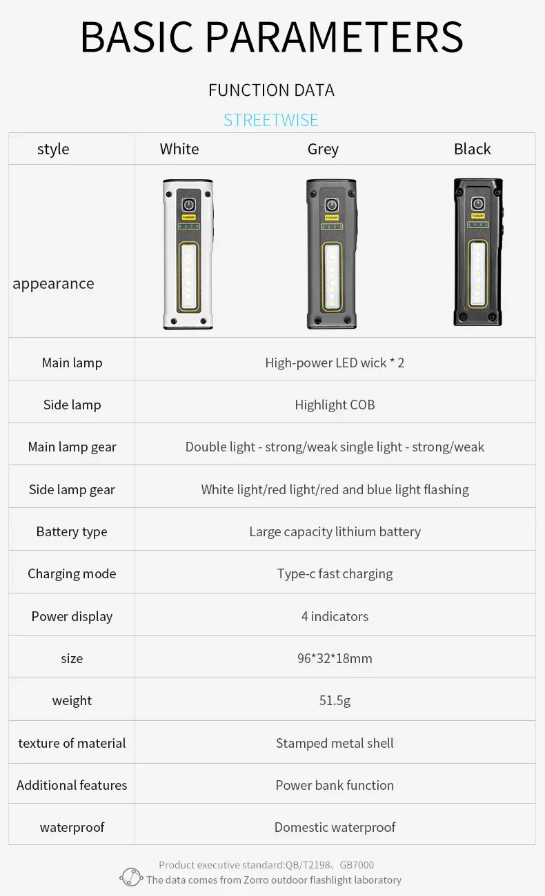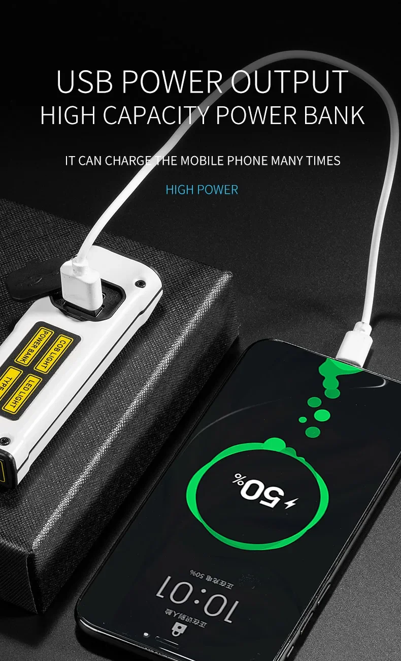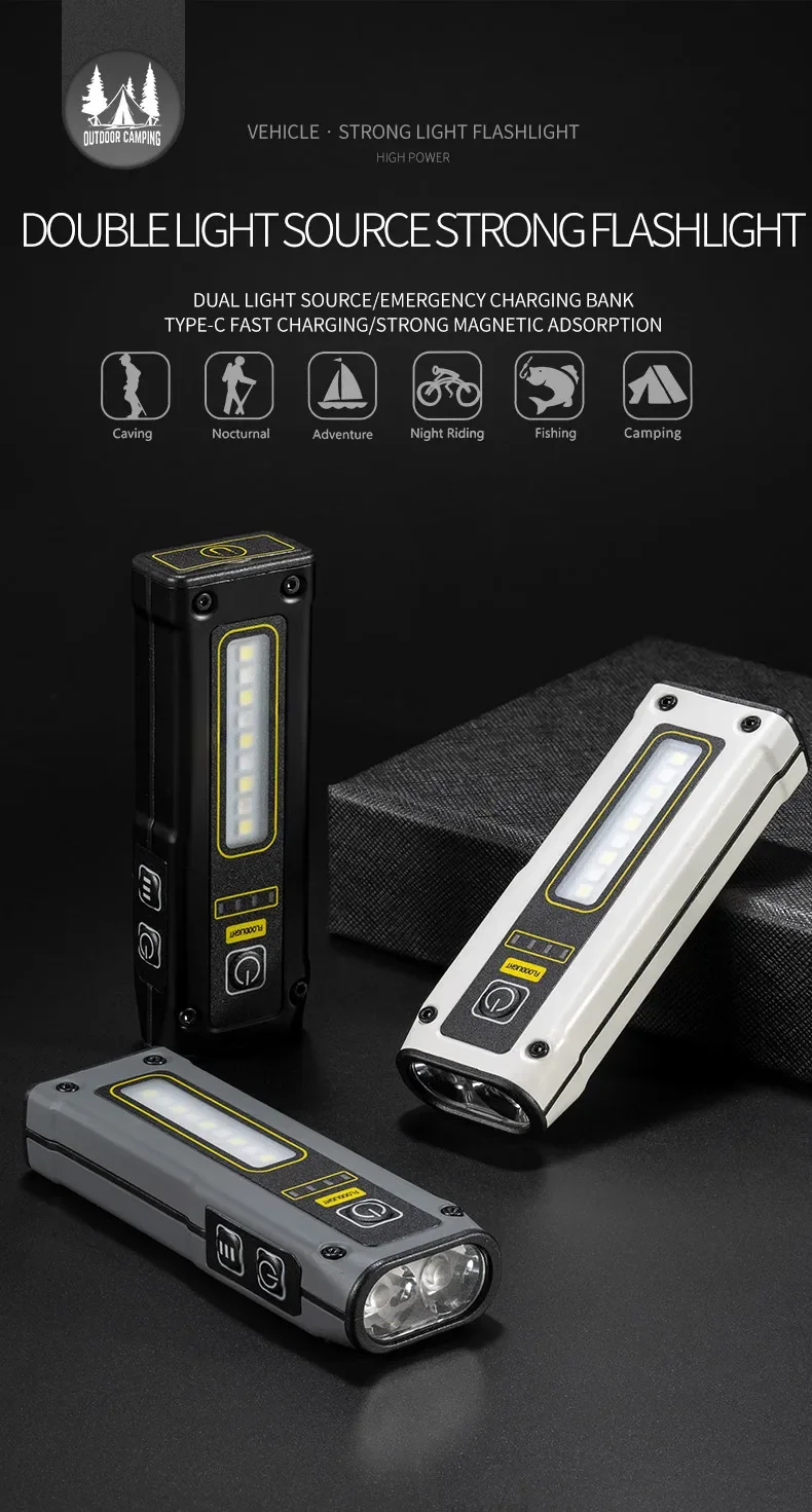 This is a dual light strong flashlight, remind mini, carry around suitable for a variety of occasions. With a variety of functions, such as tail has strong magnetic adsorption function, Type-c fast charging and power bank function, mobile phone can be charged