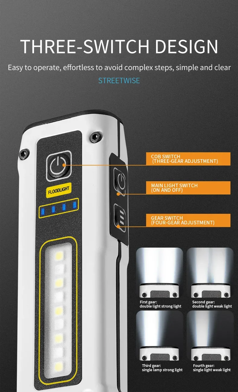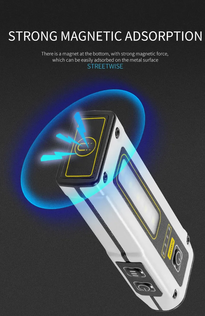 • Magnetic Base :The magnetic base allows you to attach the flashlight to metal surfaces, keeping it secure and preventing it from falling.