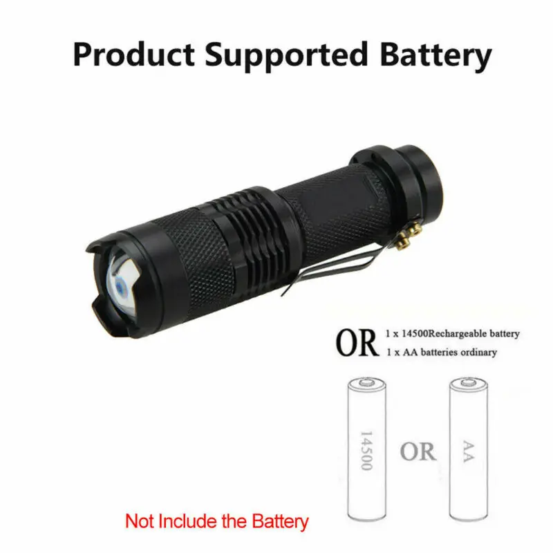 Battery Type: AA Battery OR 14500 3.6v battery (Not Included)