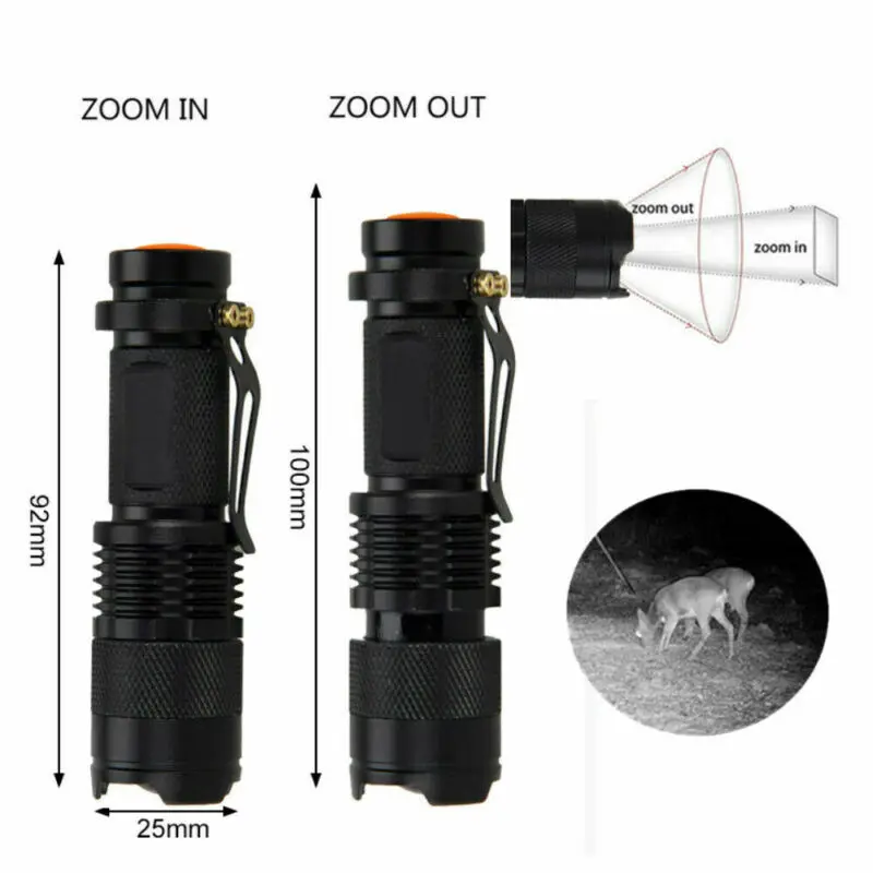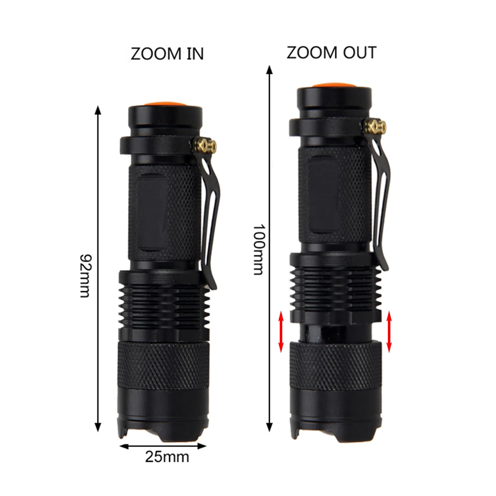 * Rotate the flashlight head part to zoom in and zoom out to get zoomable light
