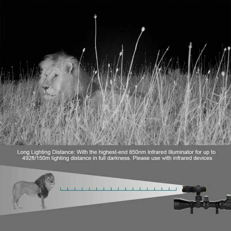 Spot light to 50-100 yards, Flood light to 50 yards with adding this to GEN 1 NVGs when Shooting coyotes fox Hog Wild Pig Varmint Predator Deer.
