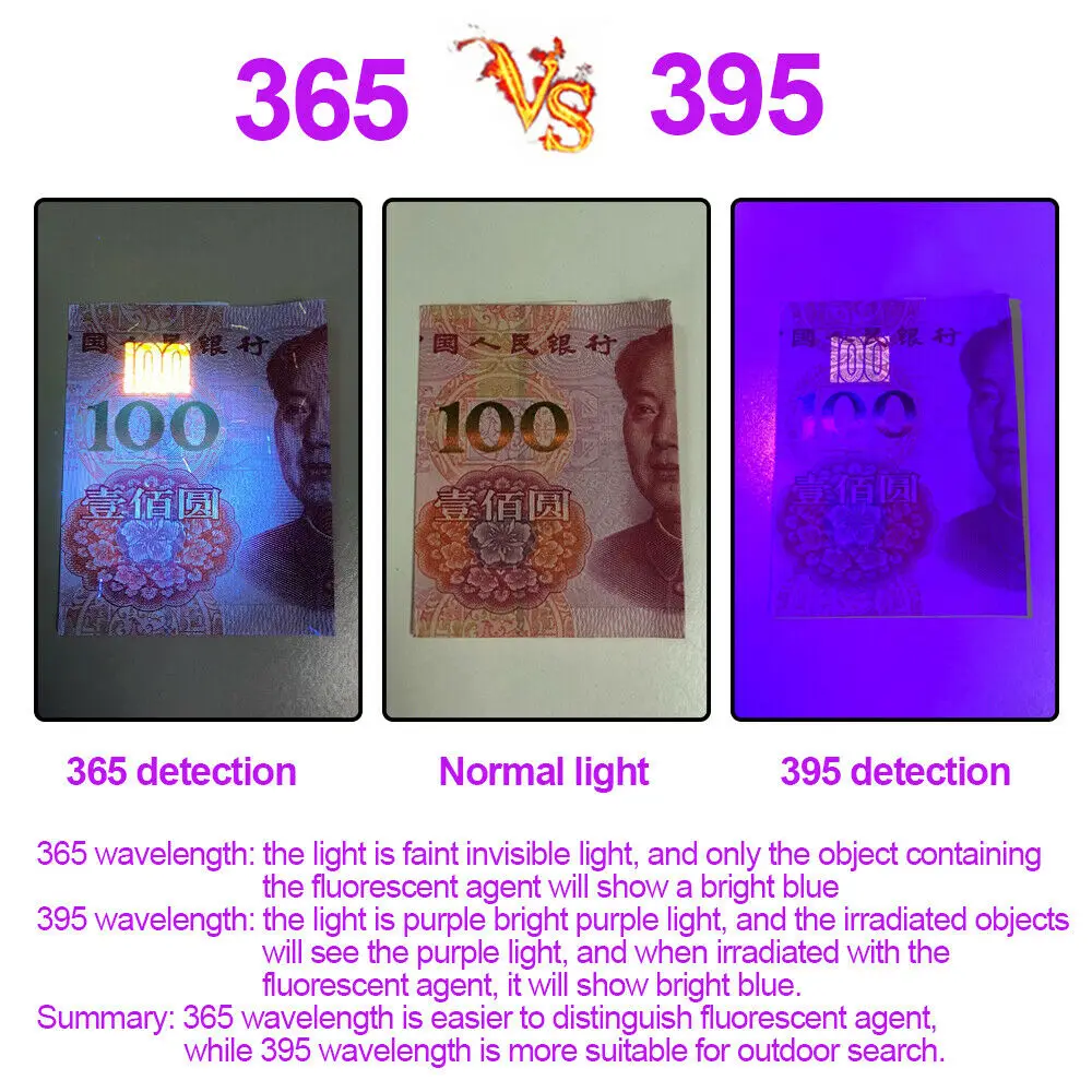 【Perfect for scorpion spotting, distinguish Oreand and other outdoor sports Counterfeit Protection】UV light reveals ‘hidden’ anti-counterfeit labels to ensure the authenticity of important documents like passports , ID and Money . Efficiently detecting fluorescent in facial mask, Pads and Diapers , fluorescent-contained is displayed blue under the UV flashlight