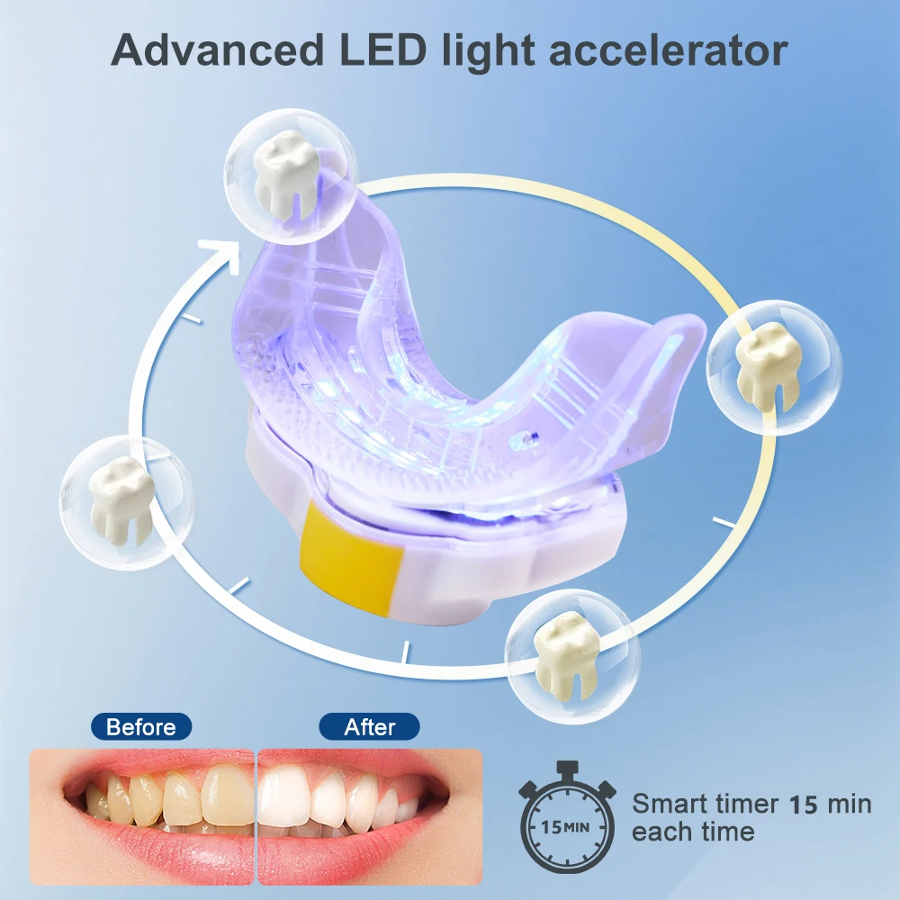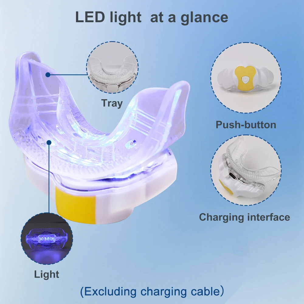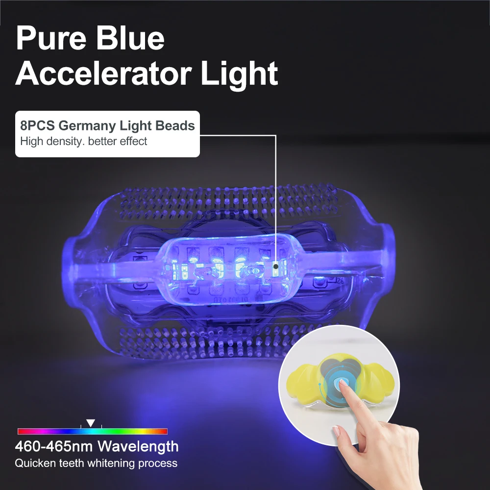Blue light can accelerate the whitening process, making your teeth brighter. Red light accompanying vibration can help massage gums. Blue and red lighting are effective in solving most of teeth problems.