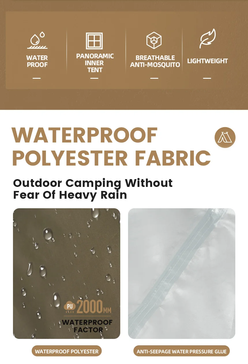 • Outside Tent Waterproof Index: 2000-3000 mm
