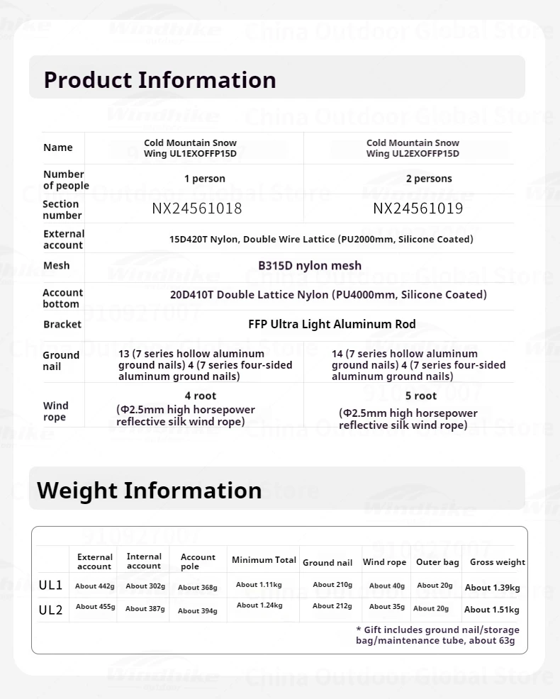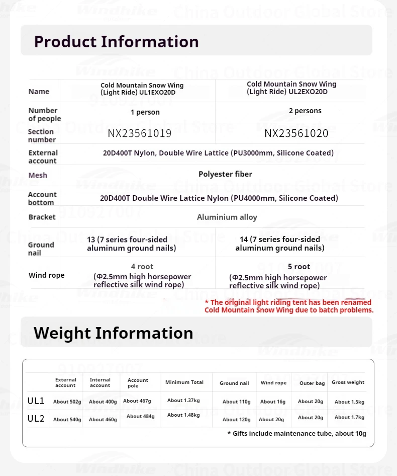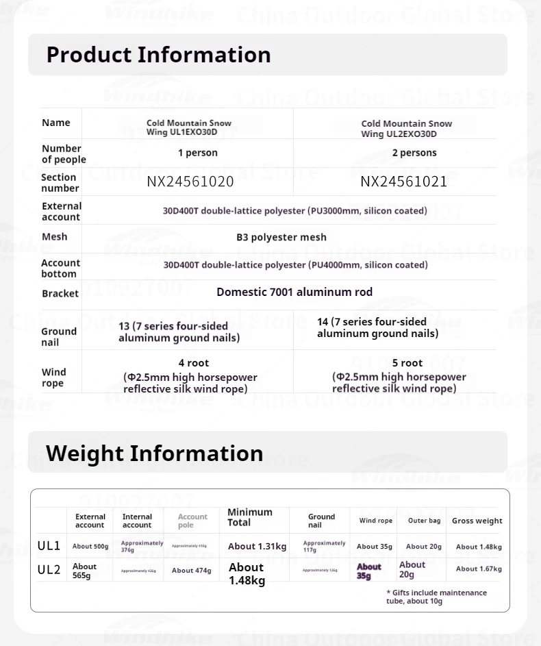 Name: Cold Mountain Snow Wing(Light Ride)UL1 EXO 20D/Cold Mountain Snow Wing(Light Ride)UL2 EXO 20D