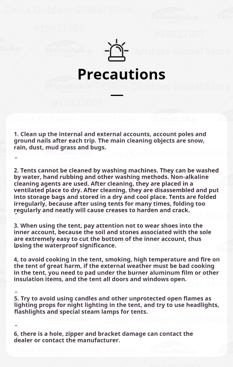 • Outside Tent Waterproof Index: 2000-3000 mm