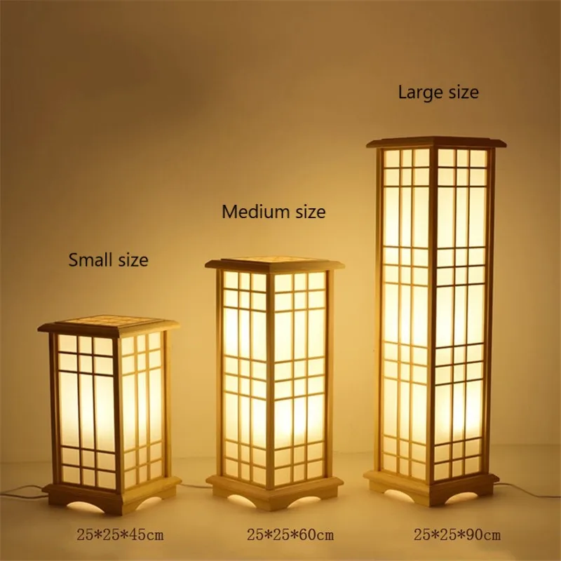 Modern Japanese Floor Lamps Tatami Style Square Shape Wooden LED Lamp Floor Bedroom Standing Lamps for Living Room Tall Lamp E27
