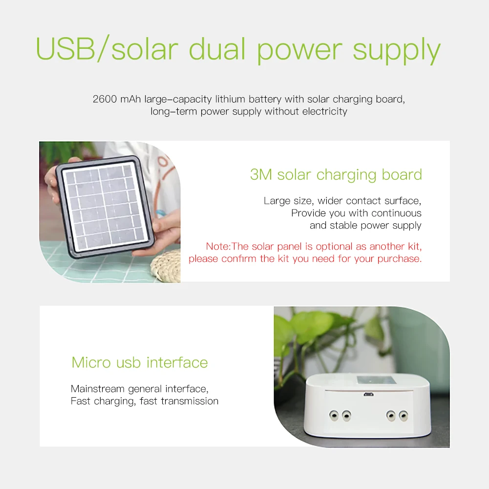 5.Weather display and outdoor humidity are monitored on LCD screen,pushed 3-4 minutes after being connected,viewing your local weather timely;the internal lithium battery has a standby time of up to 4-5 days,together with USB power supply for fast charging and transmission,the solar panel is optional as another kit,whose battery will last for a long time after four-hour sun exposure one day ;includes full 2-year warranty and 60-day refund guarantee for complete satisfaction.