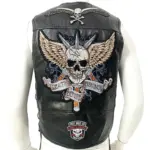 Be the first to review “Motorcycle Leather Vest Embroidered Patch Moto Sleeveless Jacket Cycling Casual Street Vest Motorcycle Club Punk Vest”