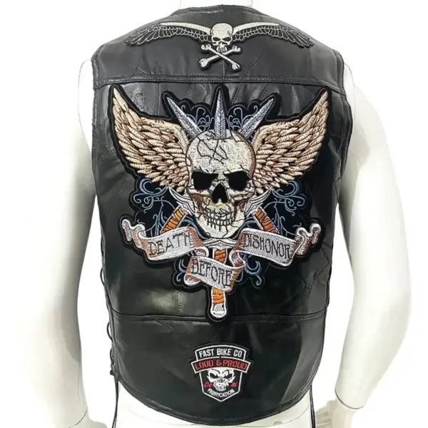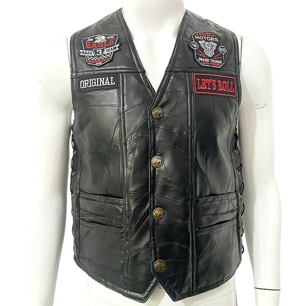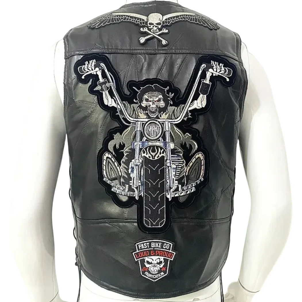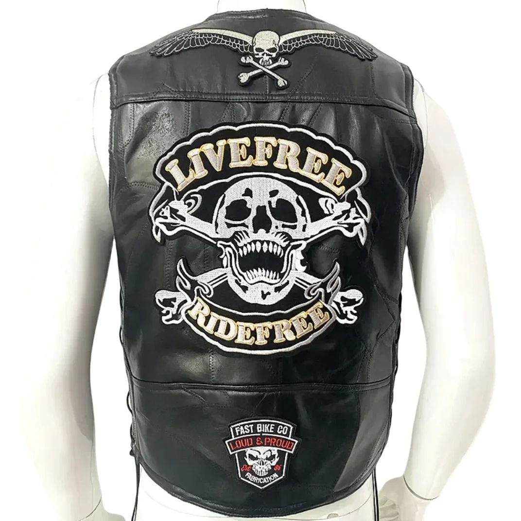 Motorcycle Leather Vest Embroidered Patch Moto Sleeveless Jacket Cycling Casual Street Vest Motorcycle Club Punk Vest