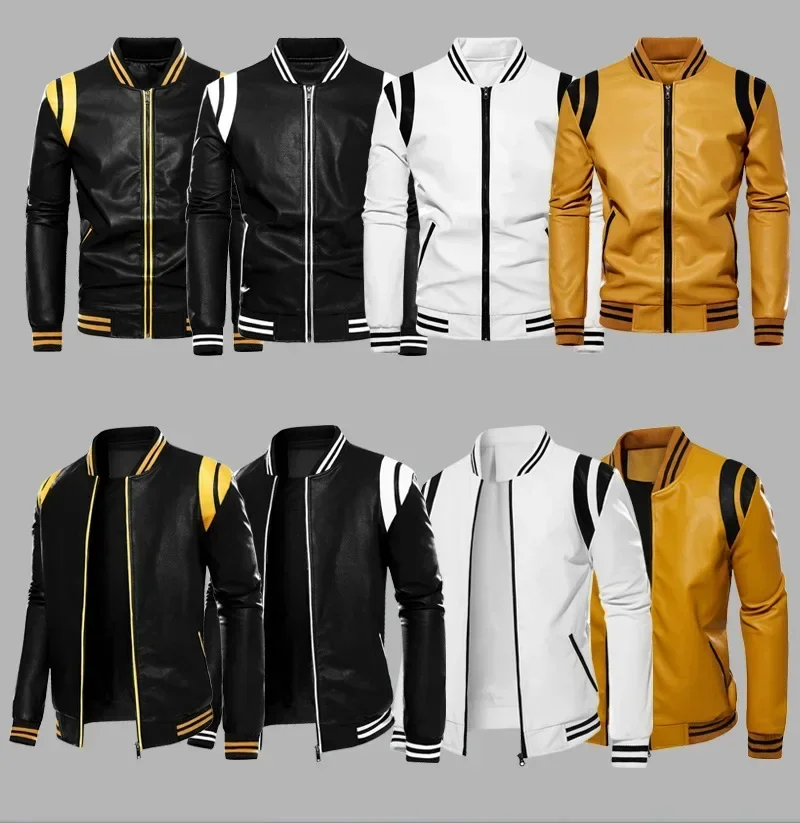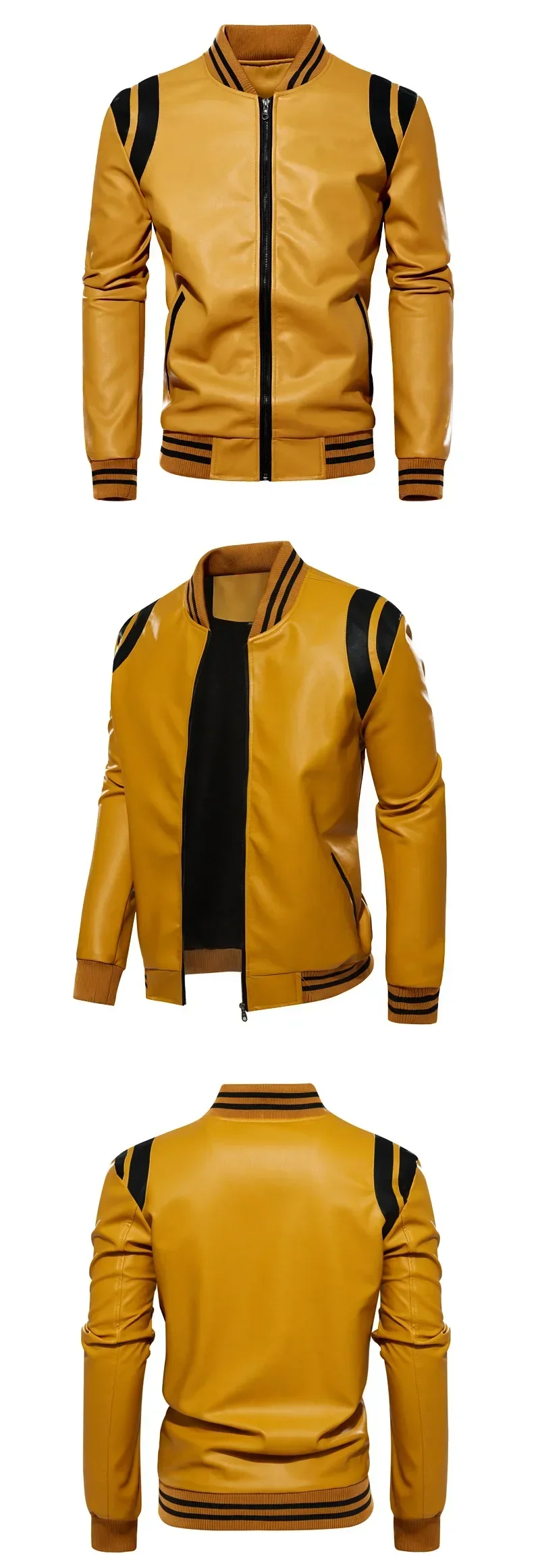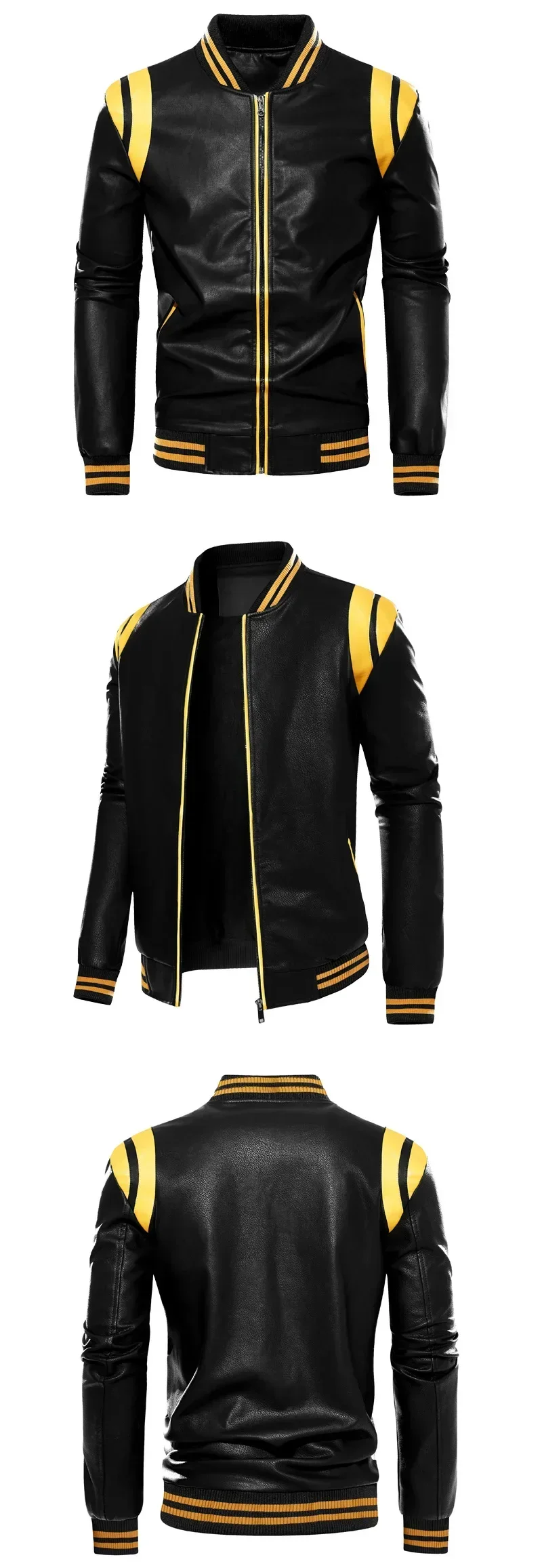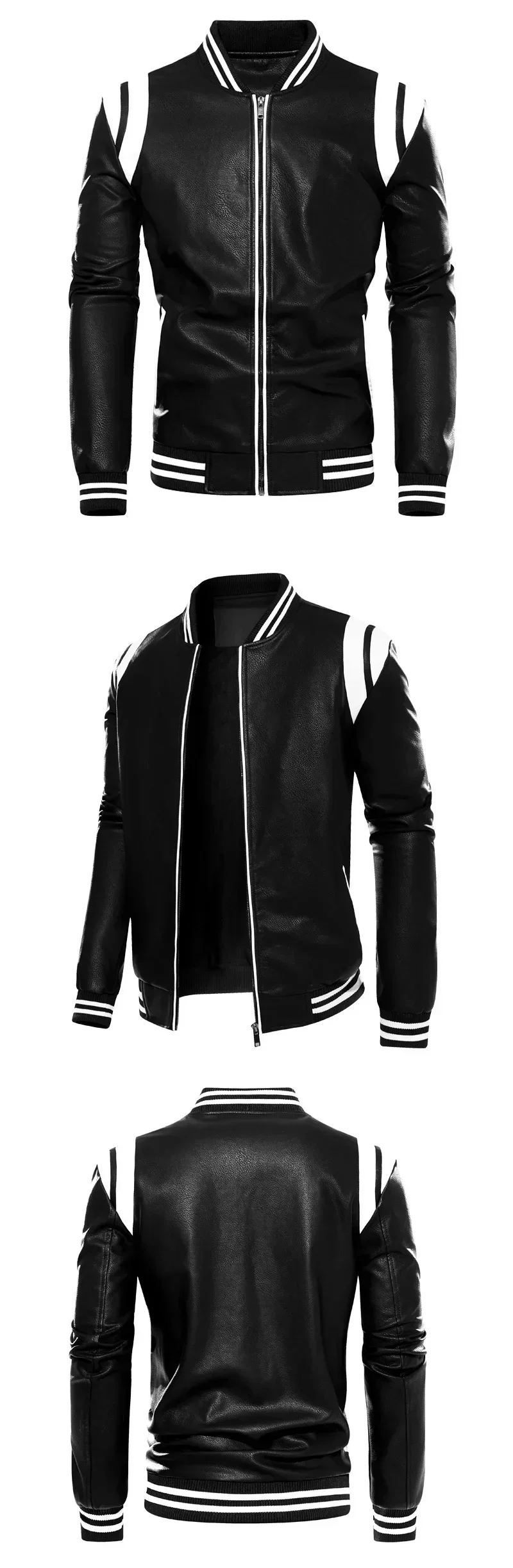 • Feature: Motorcycle Men Leather Jacket Patchwork Biker Coat