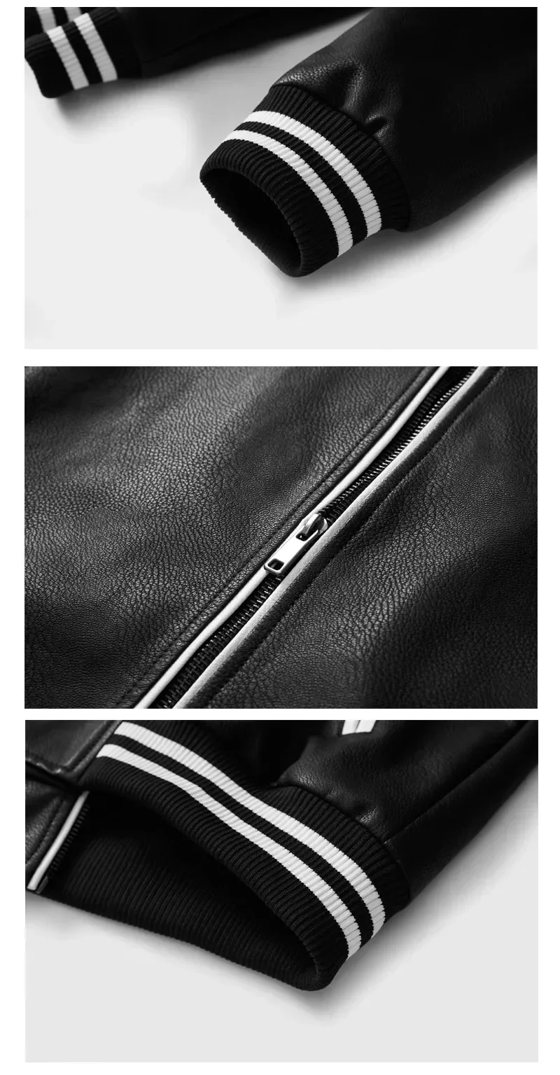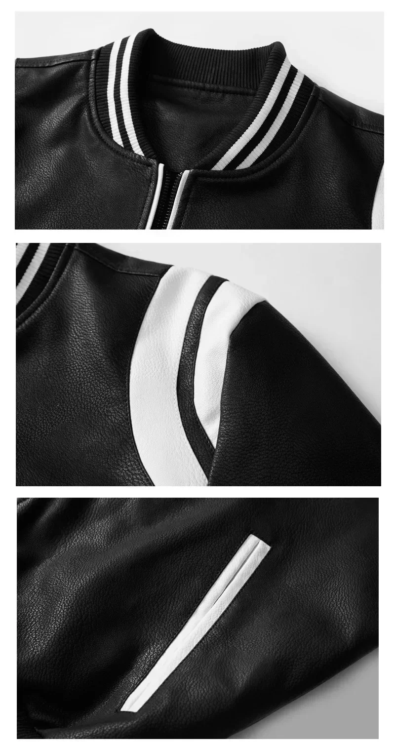 Motorcycle Men Leather Jacket Patchwork Biker Coat Motorcycle Jackets Mens Winter Casual Fleece Warm Coats Stripe Loose Outwear