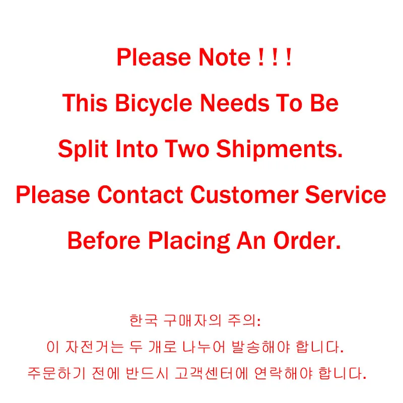 Please note that this bicycle needs to be split into two shipments. Please contact customer service before placing an order.