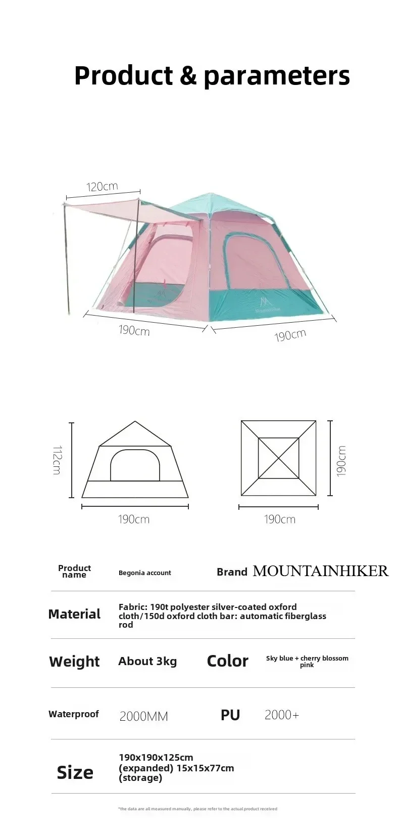 Be the first to review “MOUNTAINHIKER 3-4 Person Outdoor Camping Tent Quick Opening Automatic Beach Tent Park Picnic Waterproof Anti-UV Shade Pink Tent”