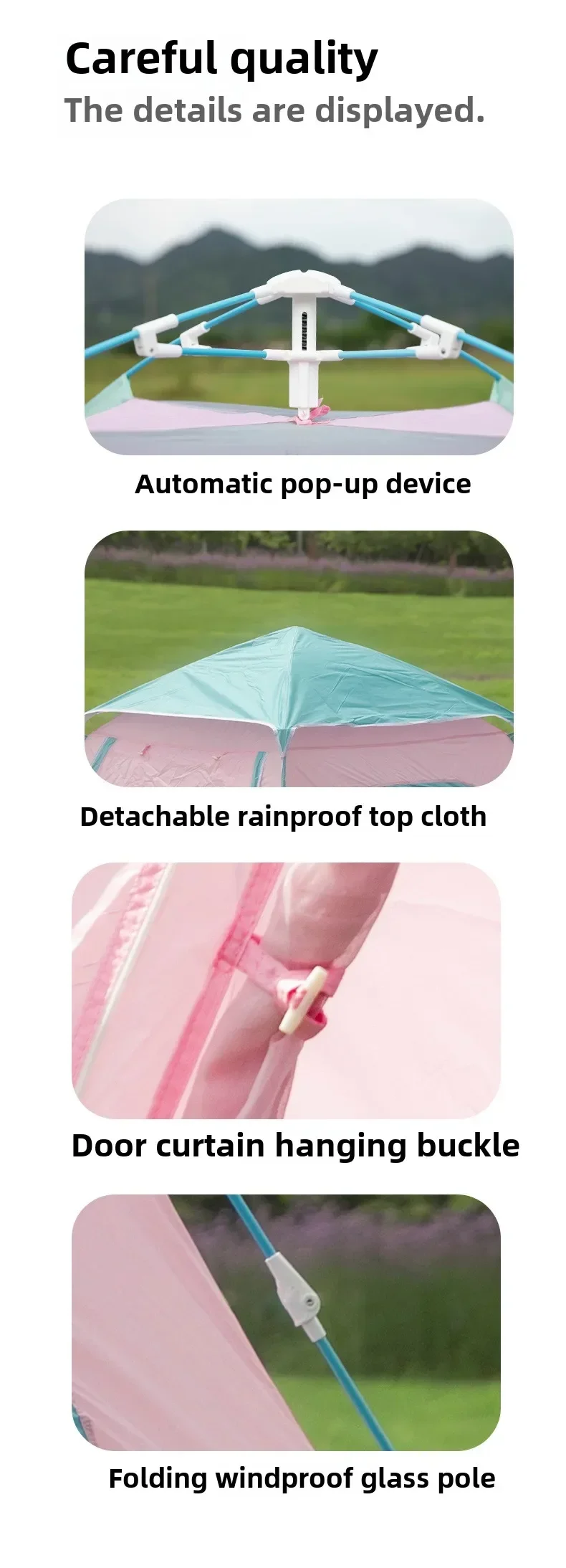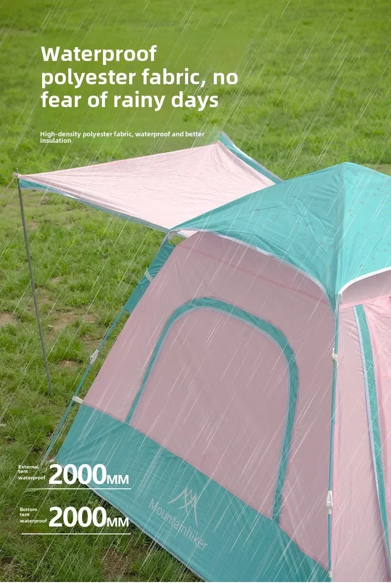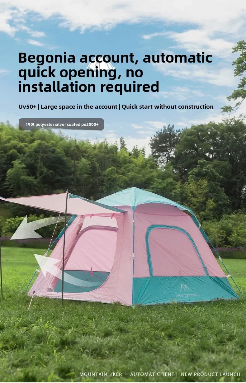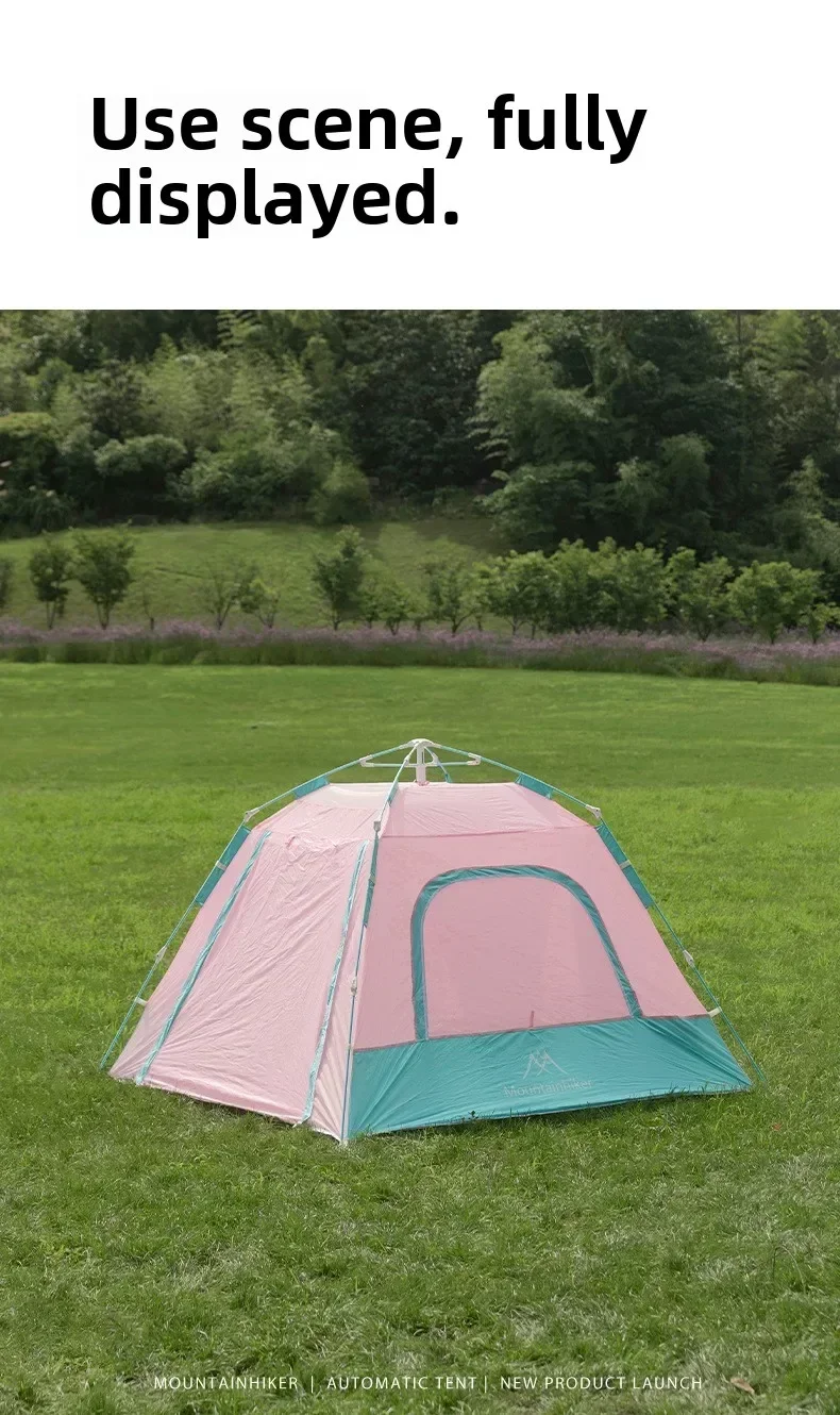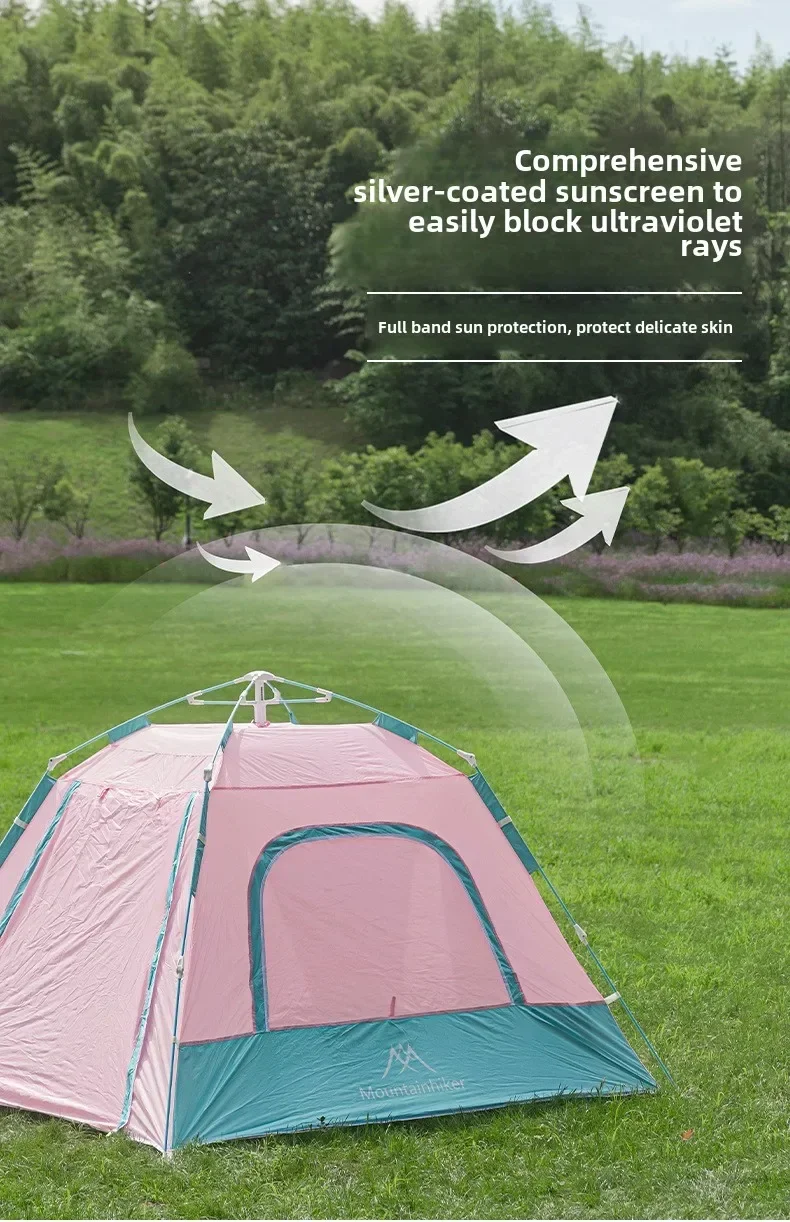 MOUNTAINHIKER 3-4 Person Outdoor Camping Tent Quick Opening Automatic Beach Tent Park Picnic Waterproof  Anti-UV Shade Pink Tent