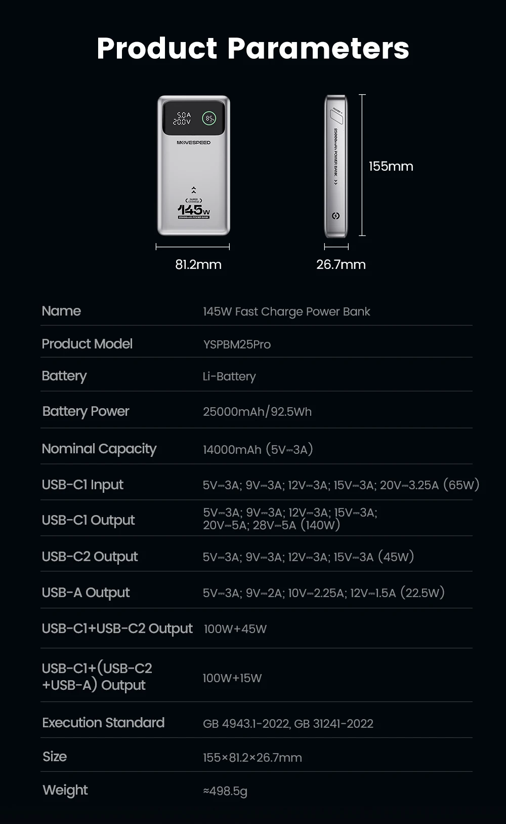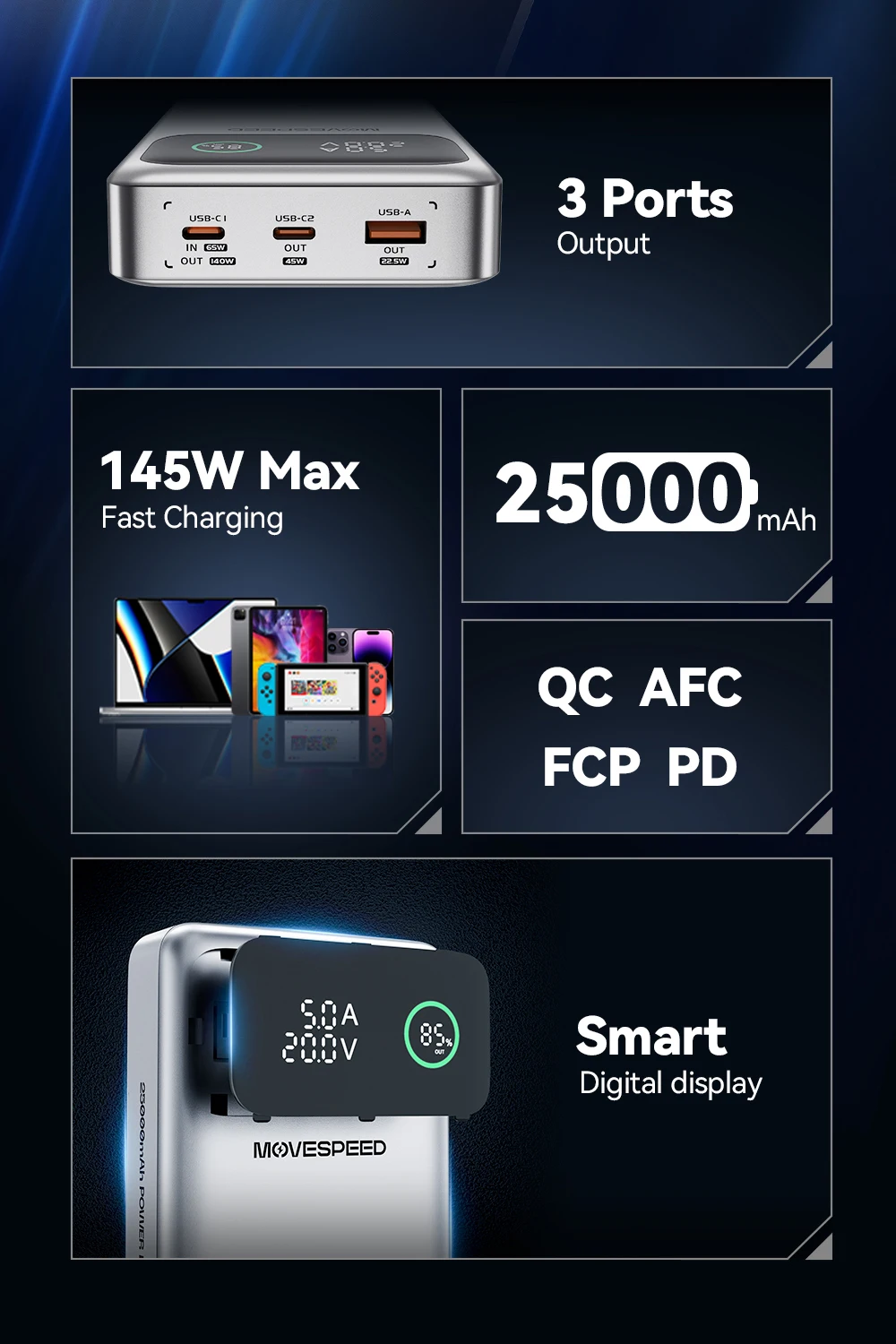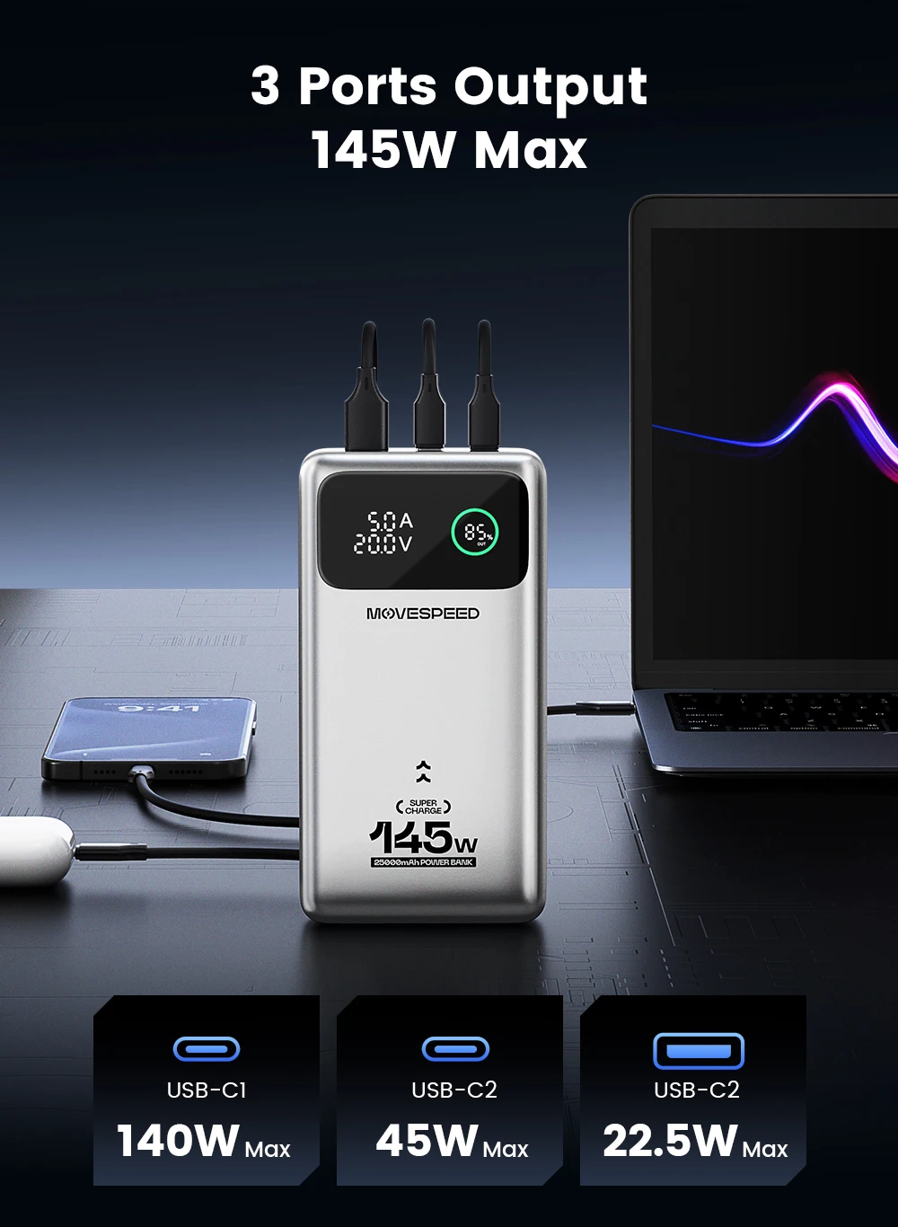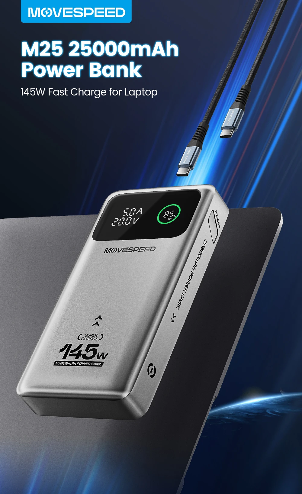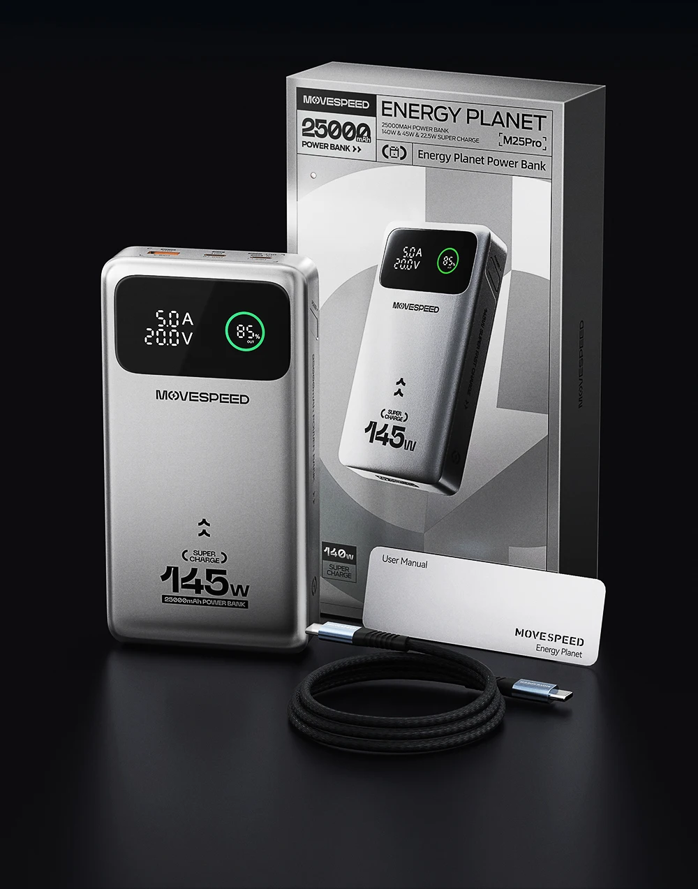 - Model: MOVESPEED M25 Pro 140W Laptop Power Bank
