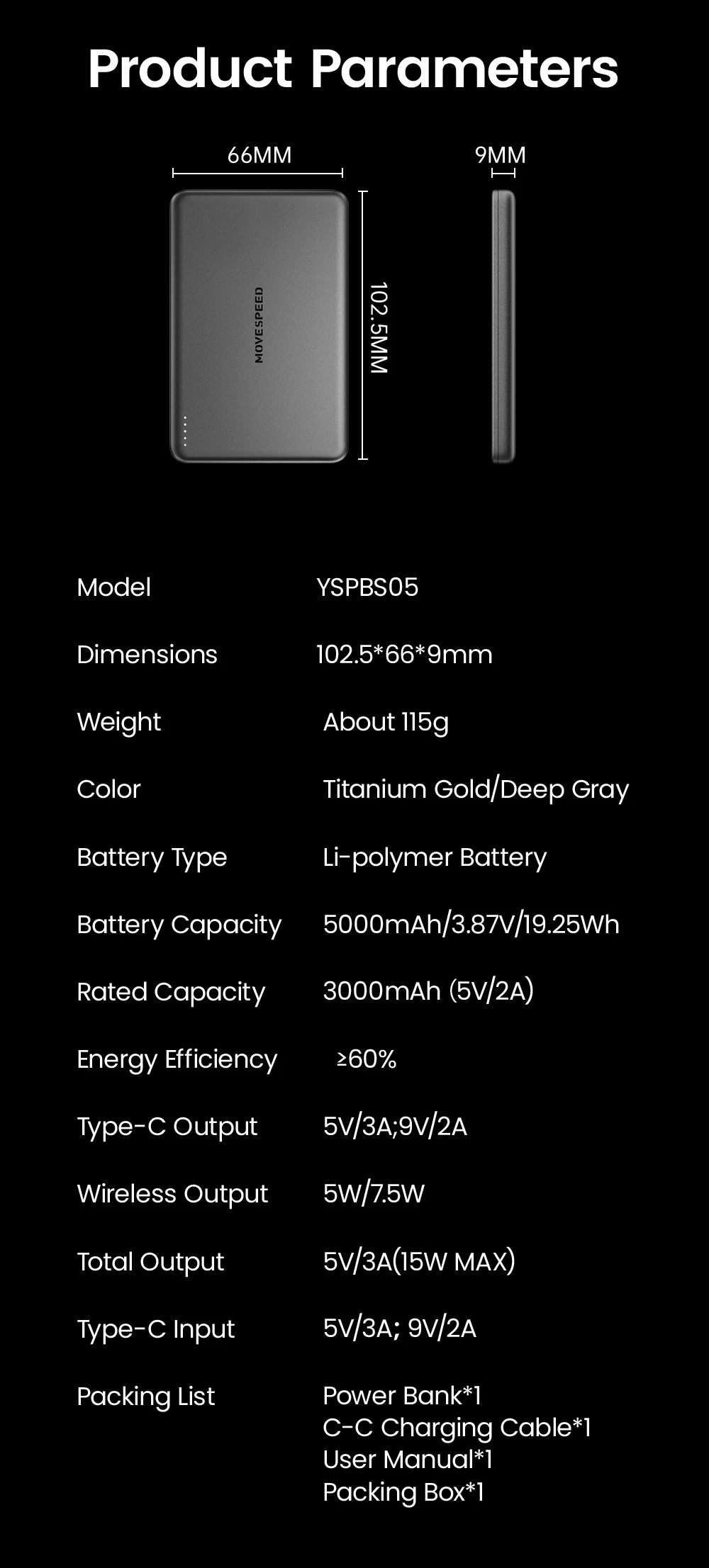 - Model: MOVESPEED S05 Magnetic Power Bank 5000mAh 20WPD Wireless Powerbank Slim Portable Battery Charger