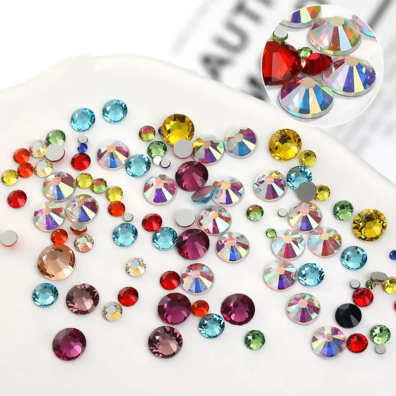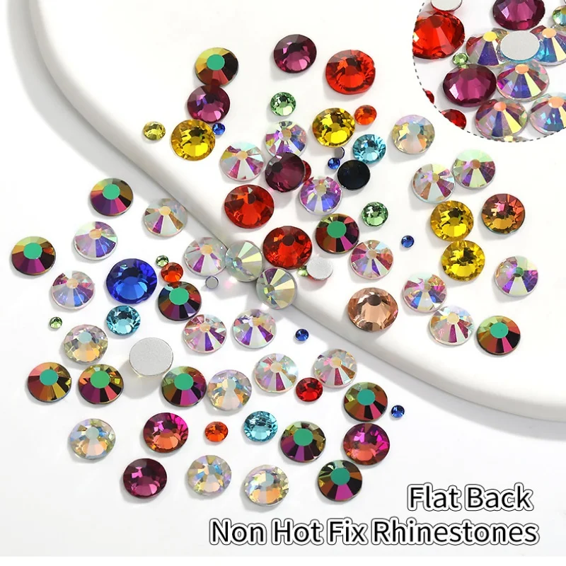 Multi colored SS6-SS10 non thermosetting rhinestone flat back crystal used for DIY nail art fabric, clothing fabric decoration