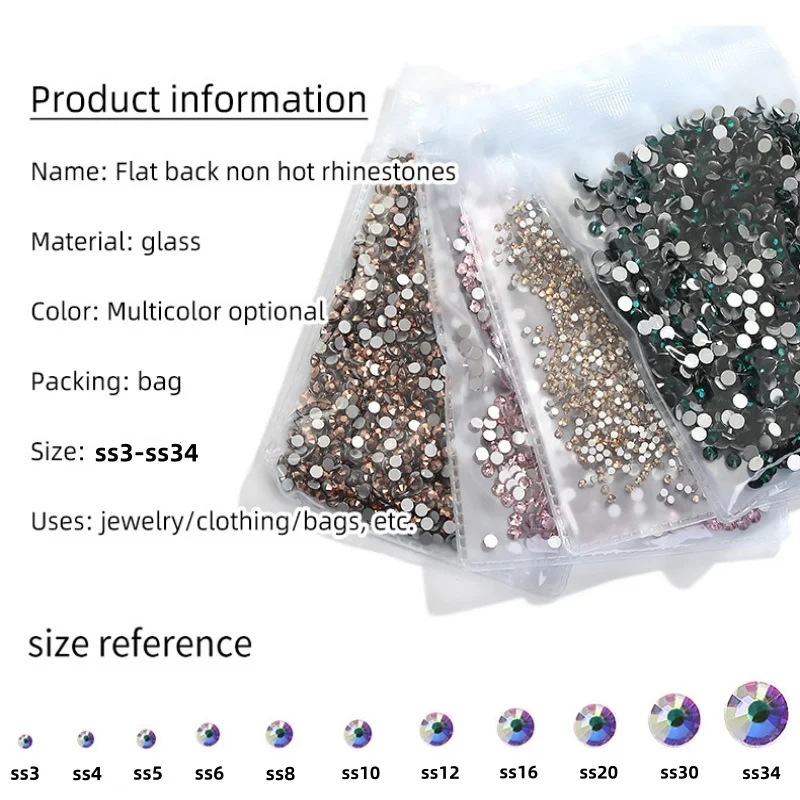 Be the first to review “Multi colored SS6-SS10 non thermosetting rhinestone flat back crystal used for DIY nail art fabric, clothing fabric decoration”
