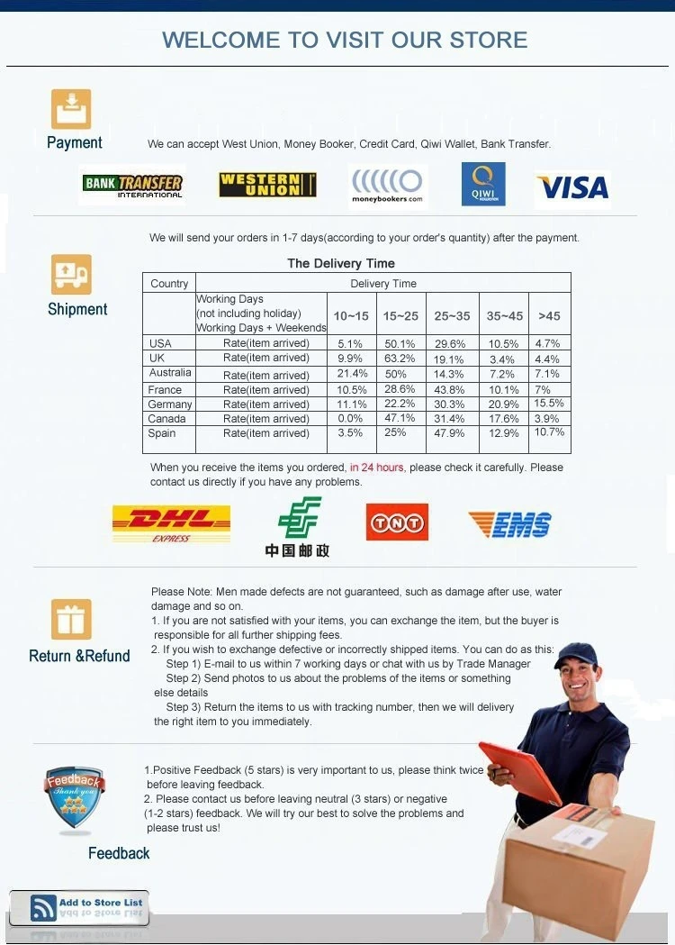 Quality Control: have better QC to inspect the goods from raw material to package with first-class quality.