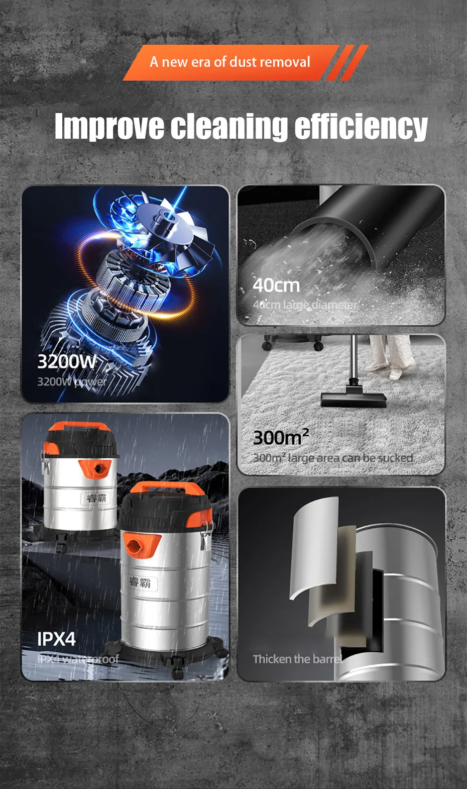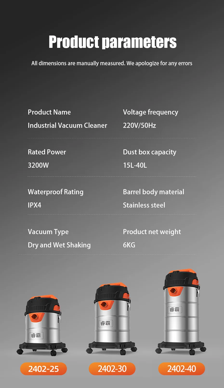 Multi-functional Wet and Dry Vacuum Cleaner 2800W 3000W 3200W 25L 30L 40L for Home Car and Commercial Industrial Cleaning