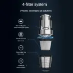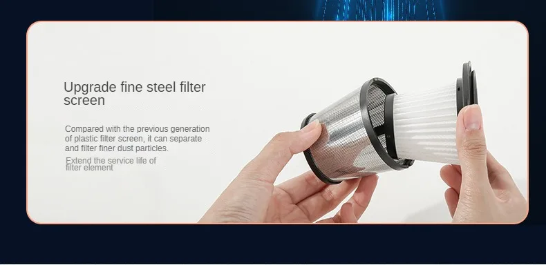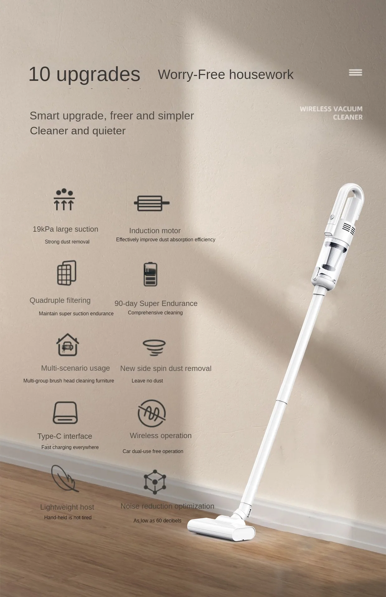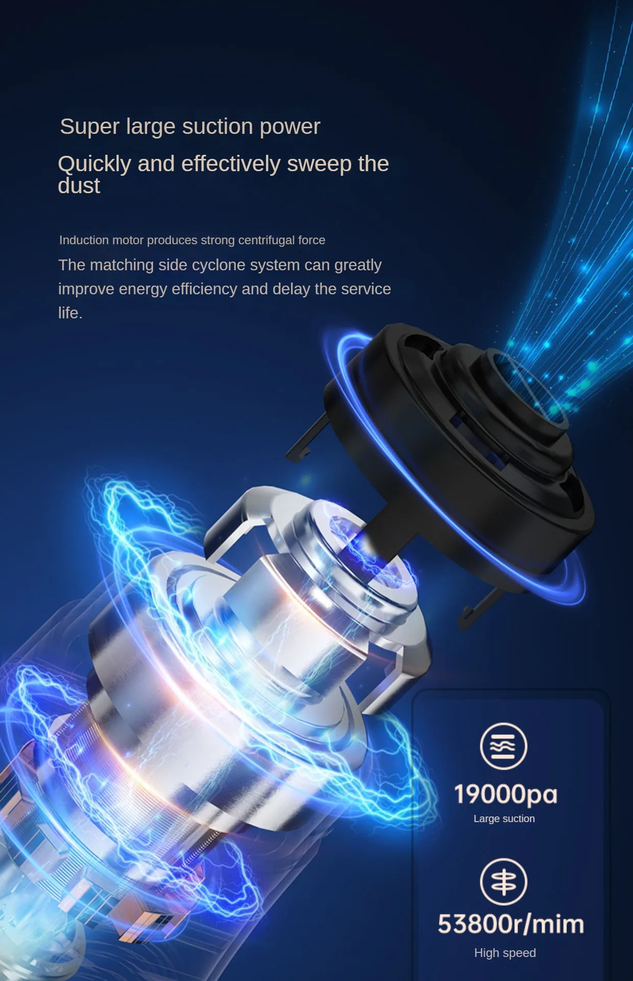 1. This wireless vacuum cleaner has a super suction power of 19000Pa, adopts quadruple high-efficiency filtration, and multiple sets of brush heads for cleaning. It is very easy for you to clean your home or the car.