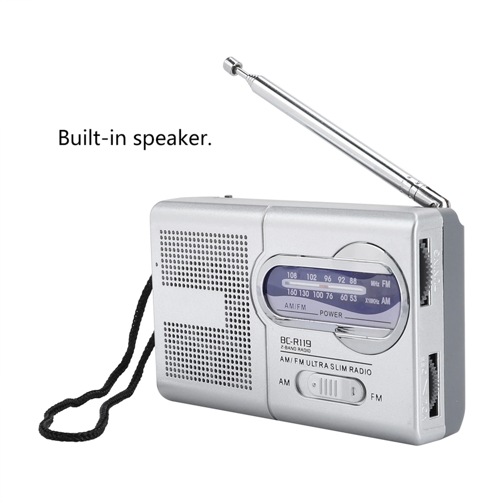 Multifunction Mini Pocket Am FM BCR119 Radio Speaker Receiver Telescopic Antenna