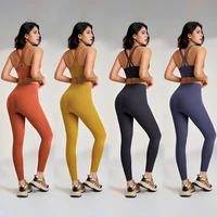 Naked yoga pants set of European and American yoga clothing high-waisted peach to lift the buttocks fitness suit female bra