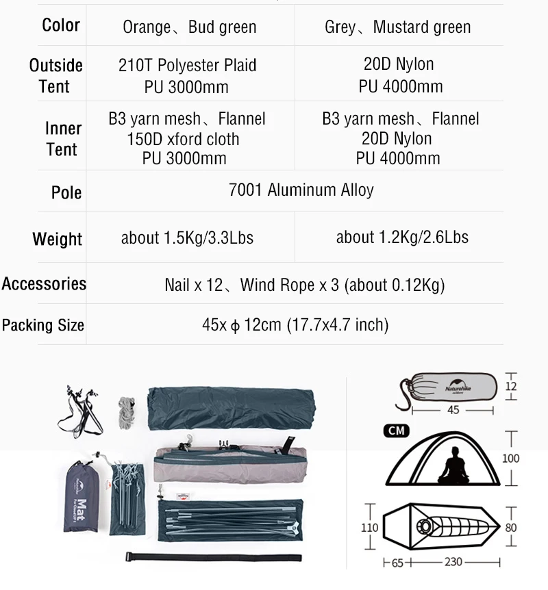 Be the first to review “Naturehike Camping Tent Cloud Up 1 Person Ultralight Outdoor Waterproof Tent Hiking Beach Tent 20D Nylon 210T Backpacking Tents”