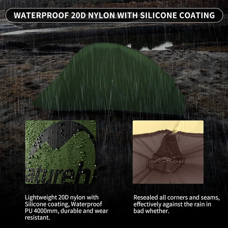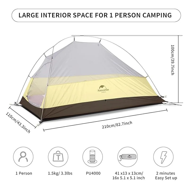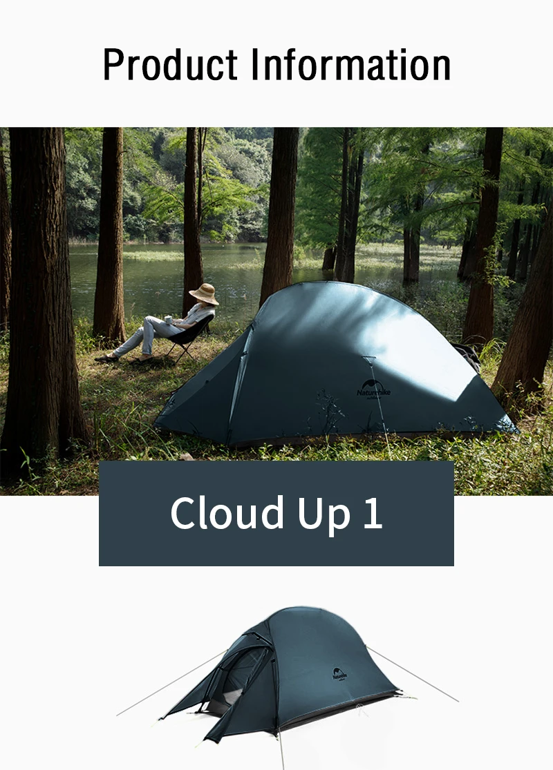 Naturehike Camping Tent Cloud Up 1 Person Ultralight Outdoor Waterproof Tent Hiking Beach Tent 20D Nylon 210T Backpacking Tents