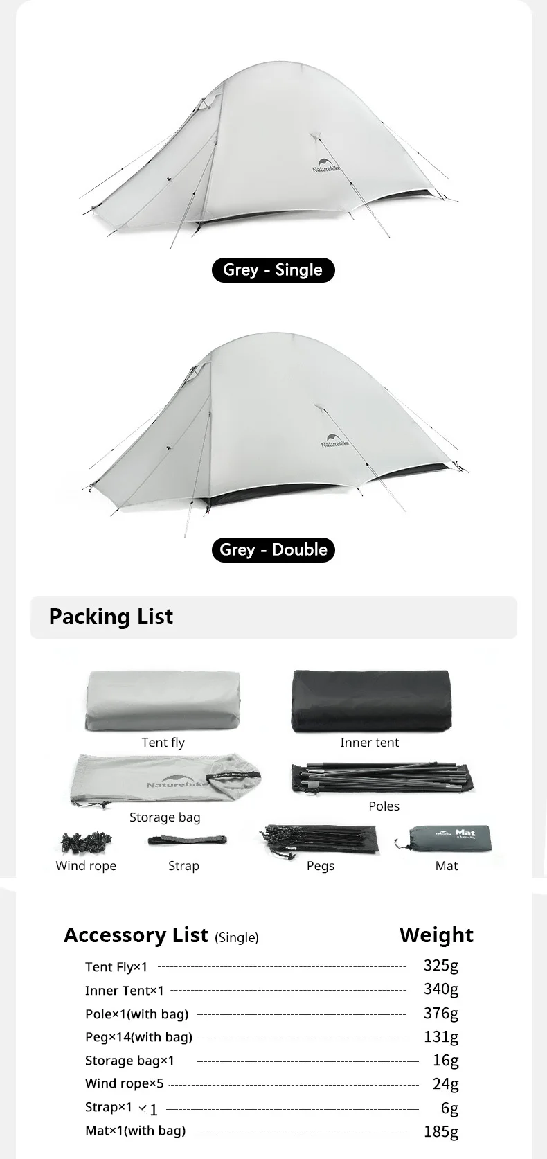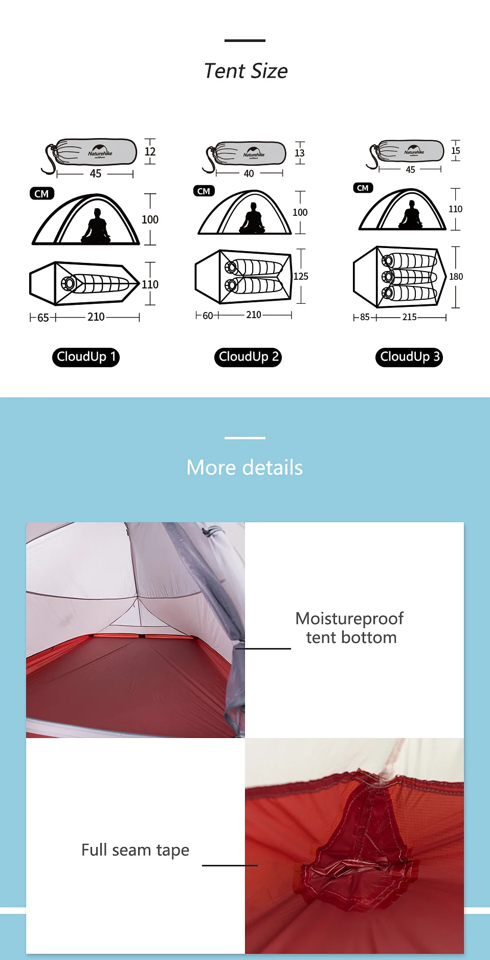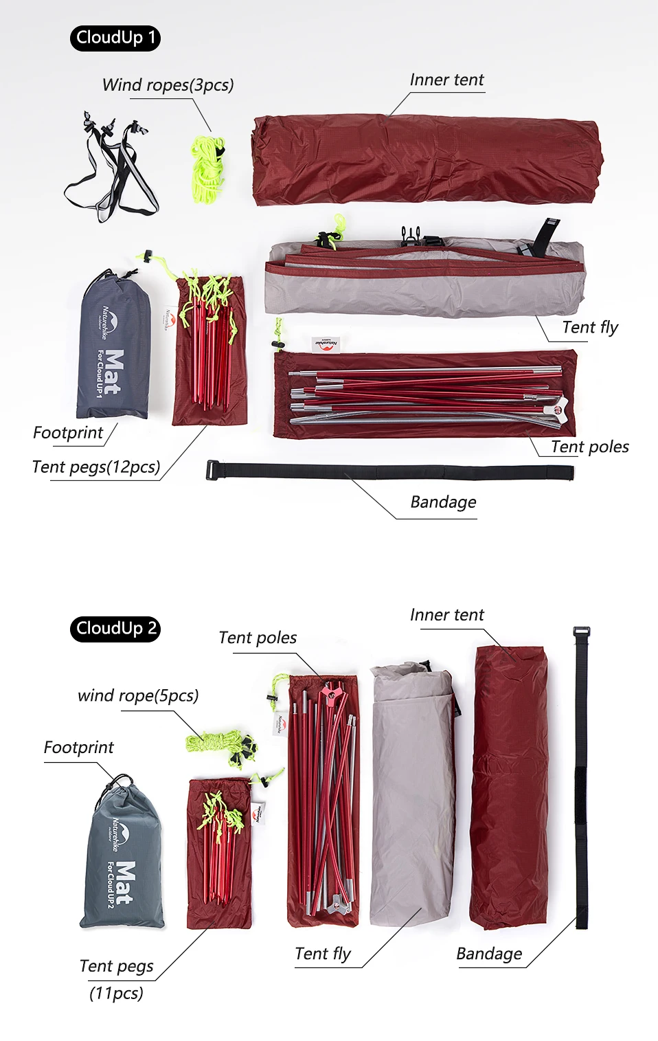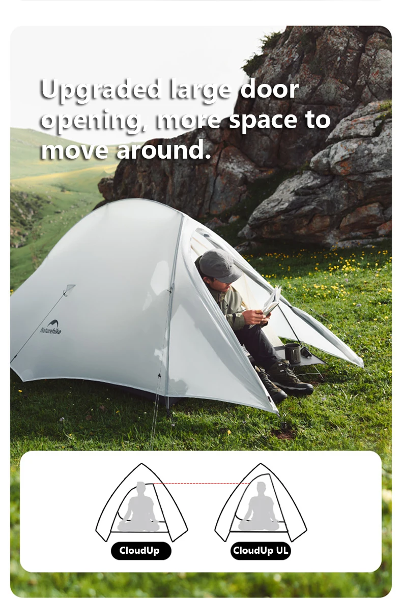 Naturehike Cloud Up 2 People Tent Ultralight 20D Camping Tent Waterproof Outdoor Hiking Travel Backpacking Cycling Fishing Tents