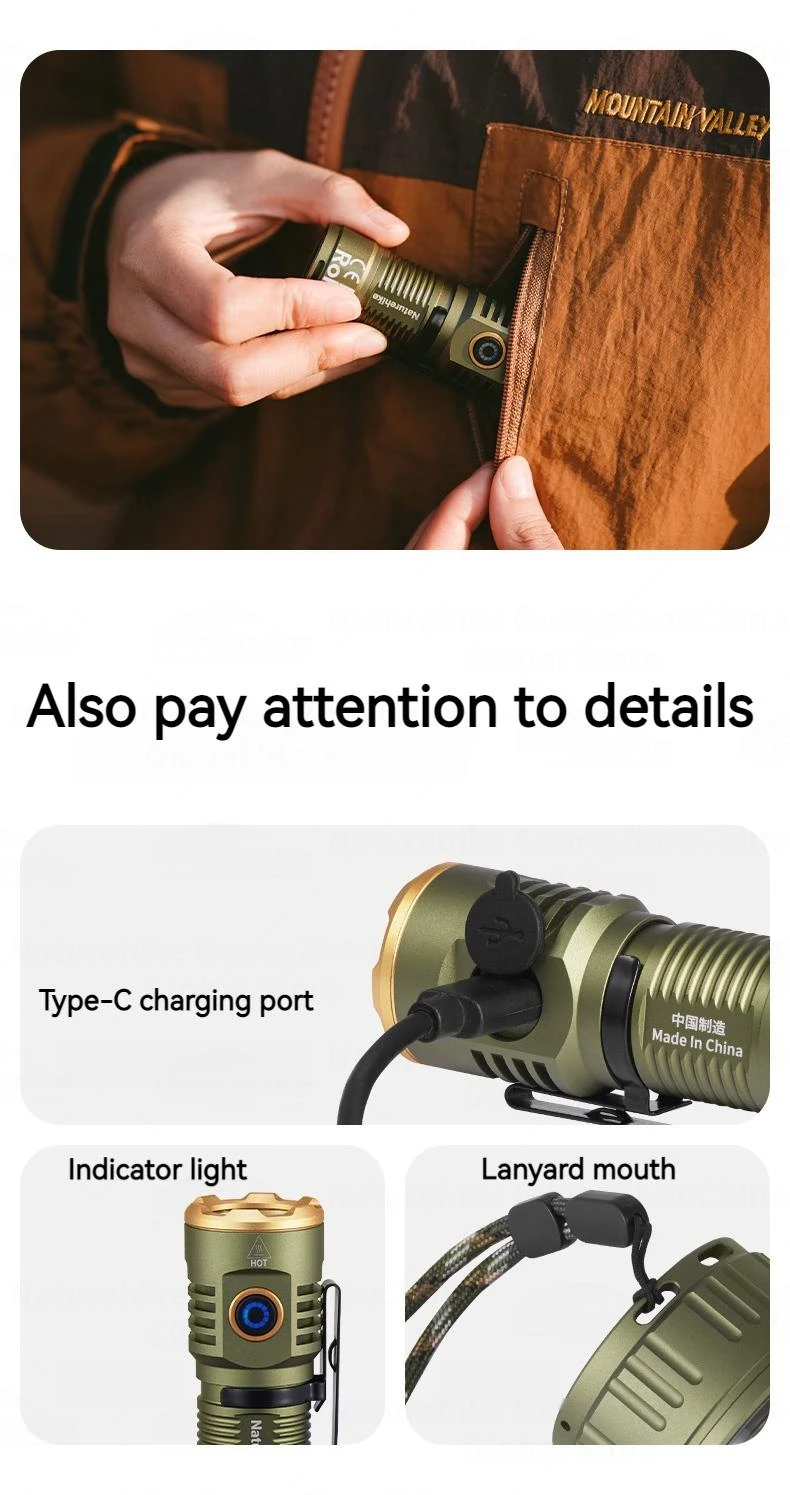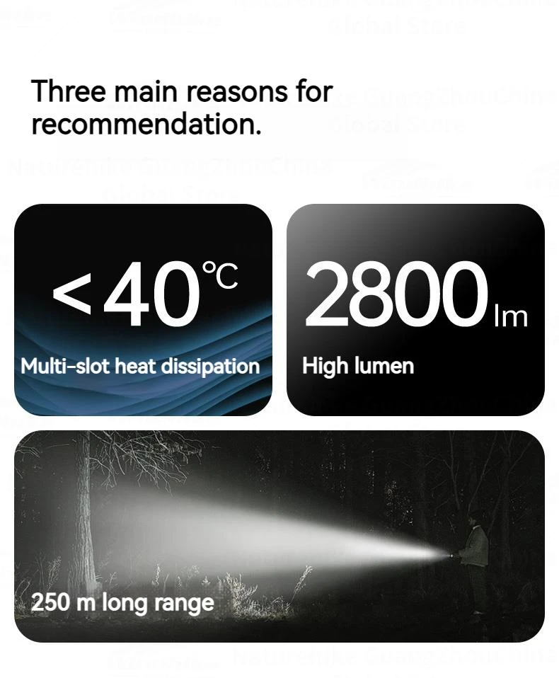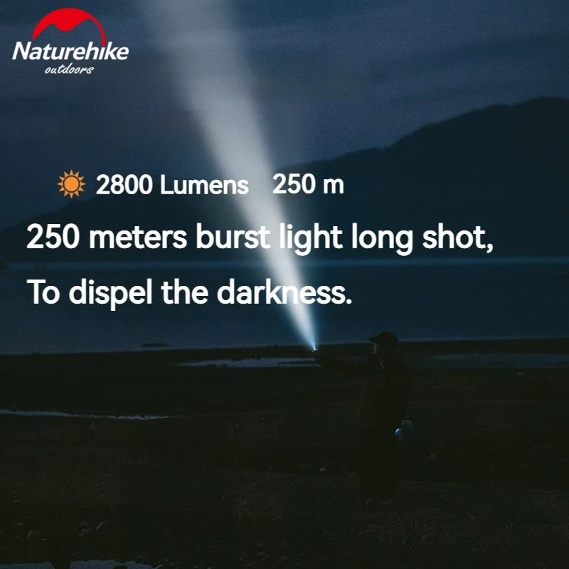 Naturehike Outdoor Flashlight LED 2800LM High Power Lumens Lamp Camping Portable Lanterns Torch 250m Long Range Waterproof Light