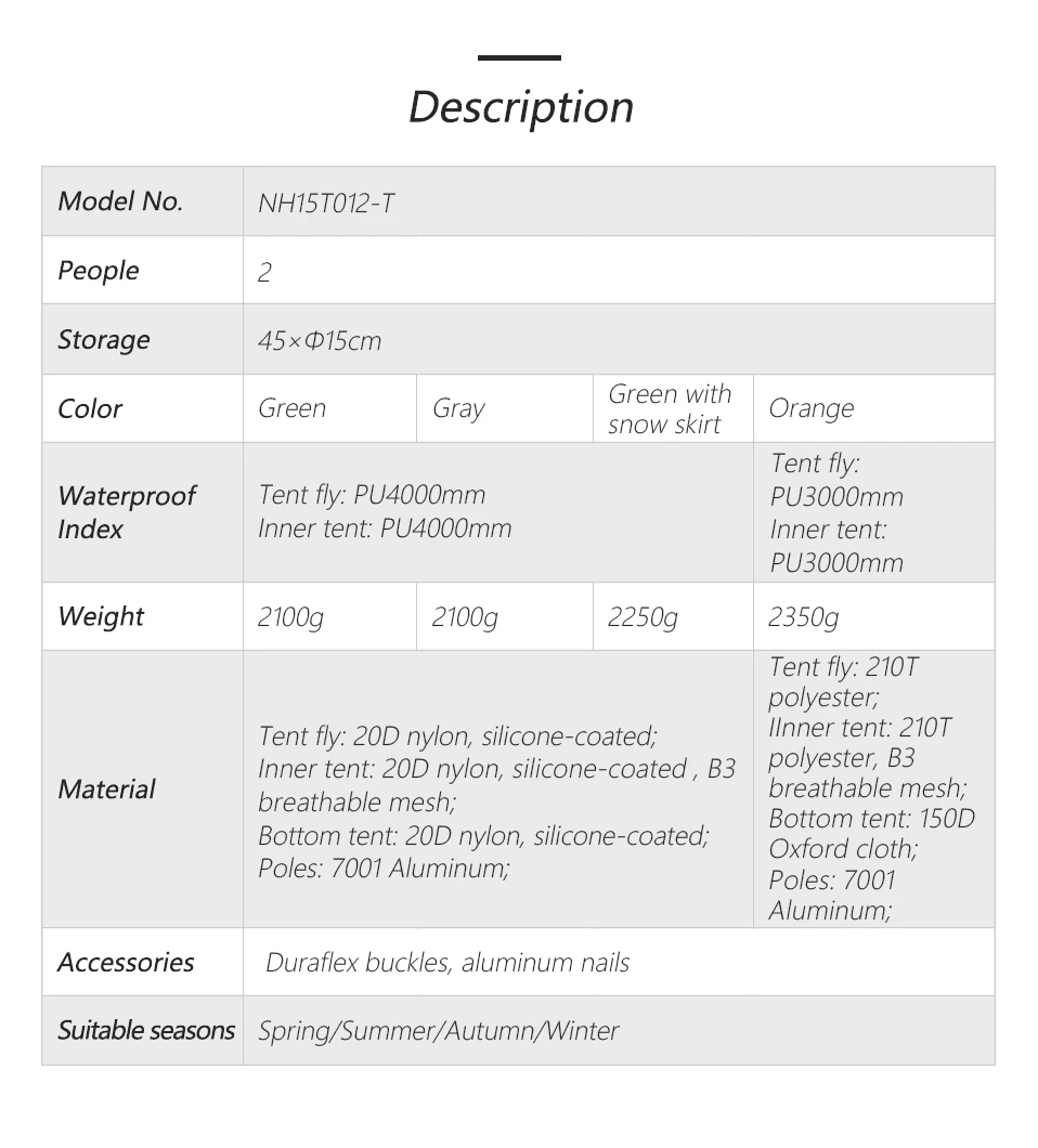 - Outside Tent Waterproof Index: >3000 mm