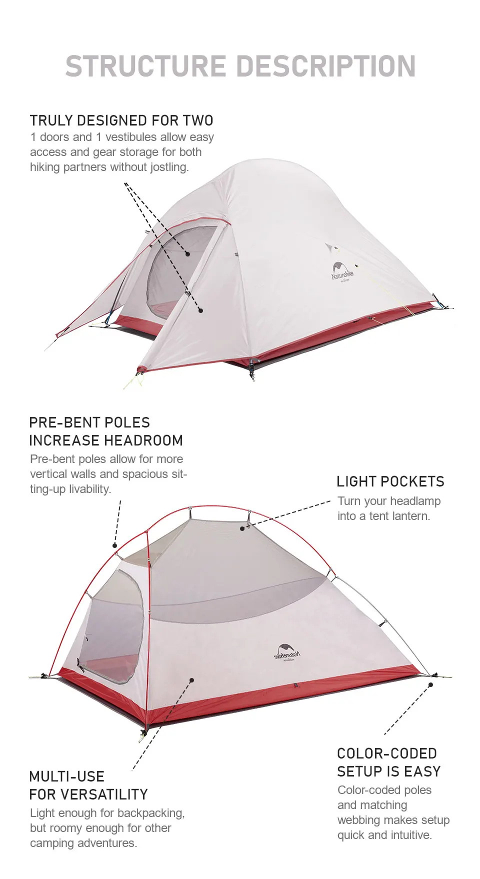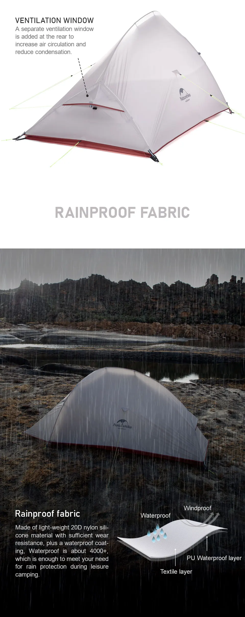 Naturehike Upgraded Cloud Up 3 Person Tent Outdoor Camping Tent Ultralight Waterproof Tent Free Standing Hiking Backpacking Tent