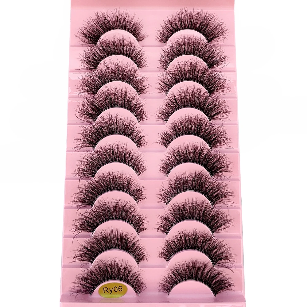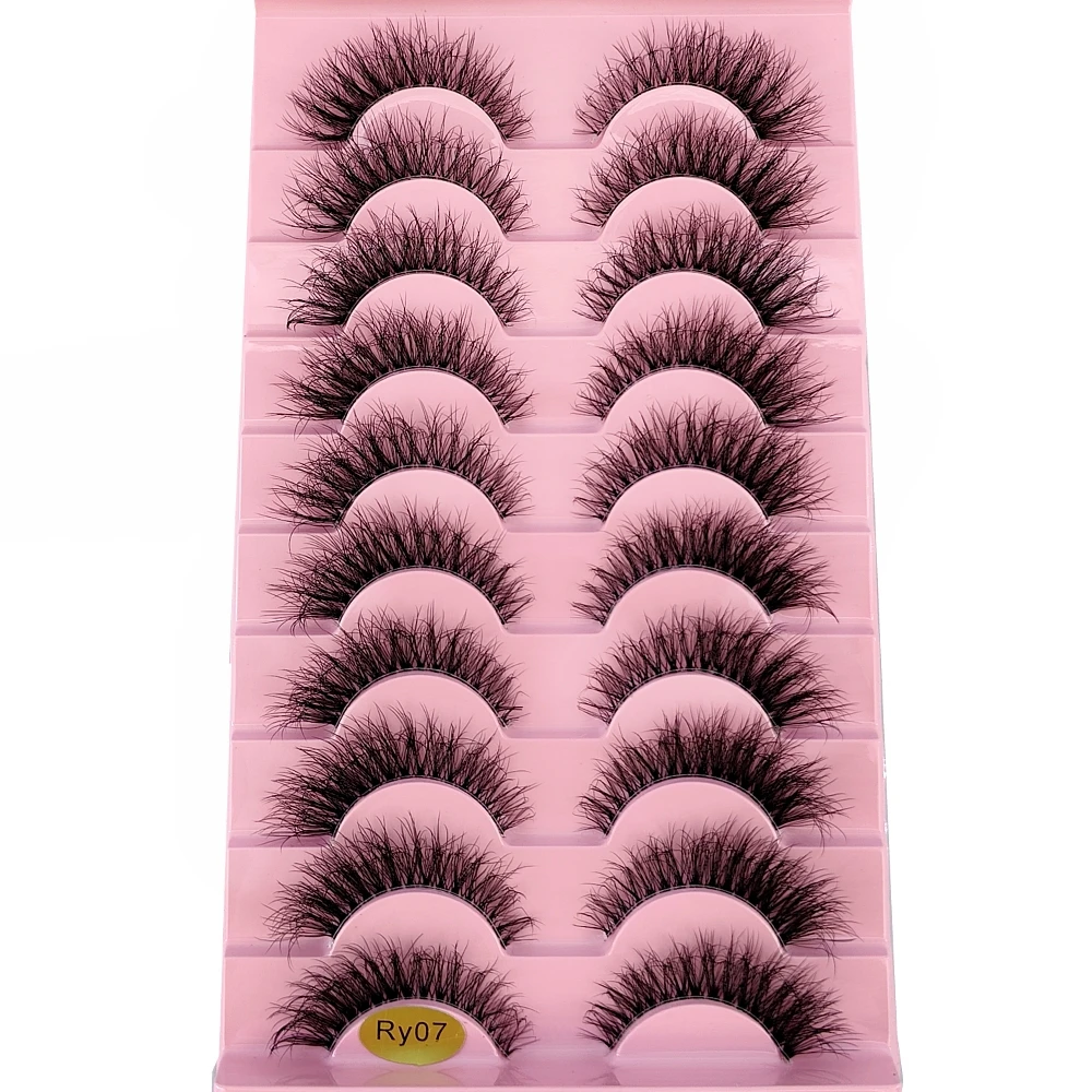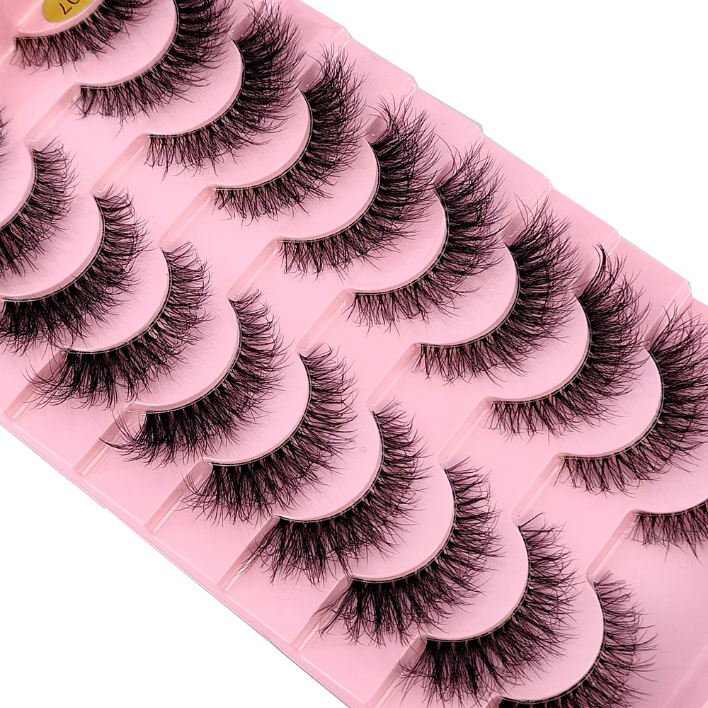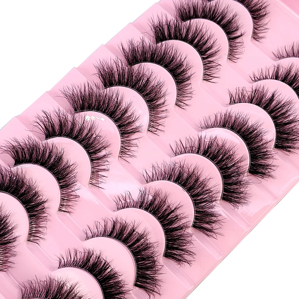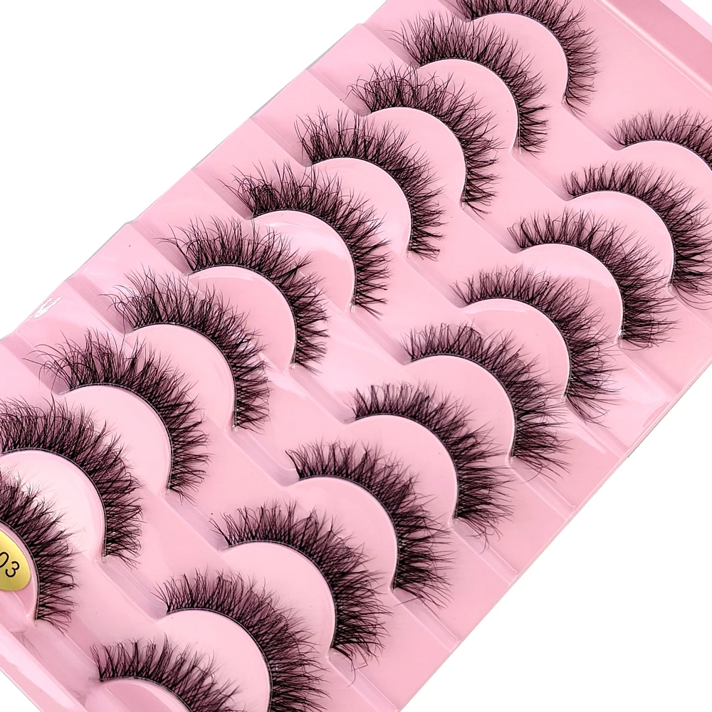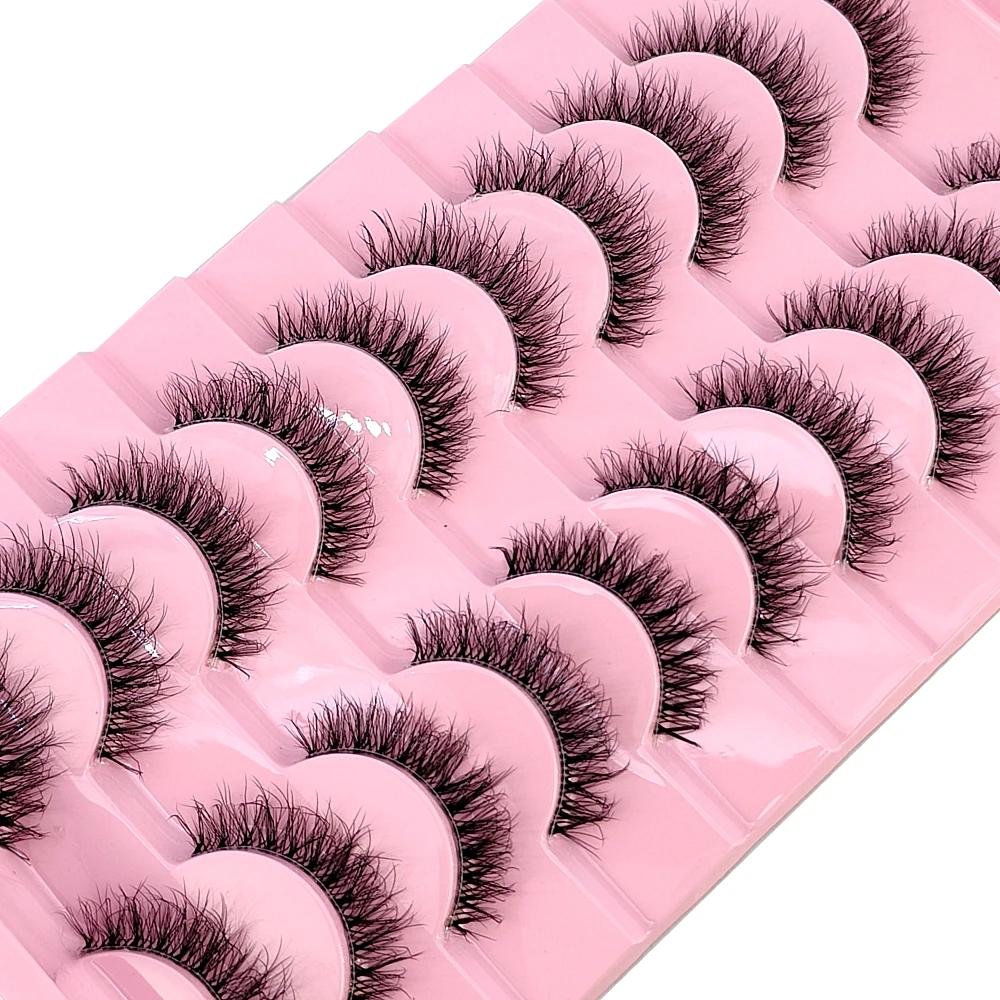 New 10 pairs 3D Mink Eyelashes Invisible Band Lashes Extension Natural False Eyelashes Cross Fairy Faux Big Eye Long Fake Lashes