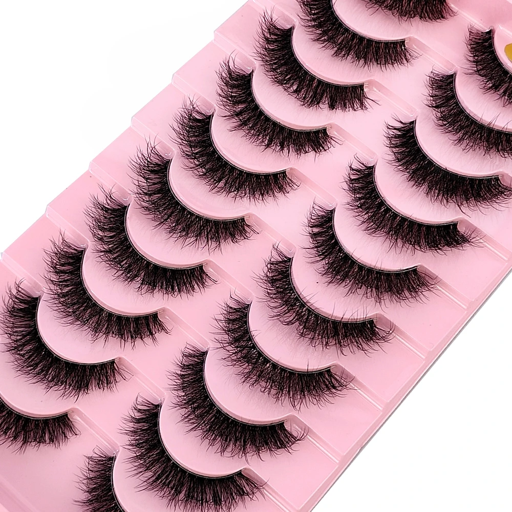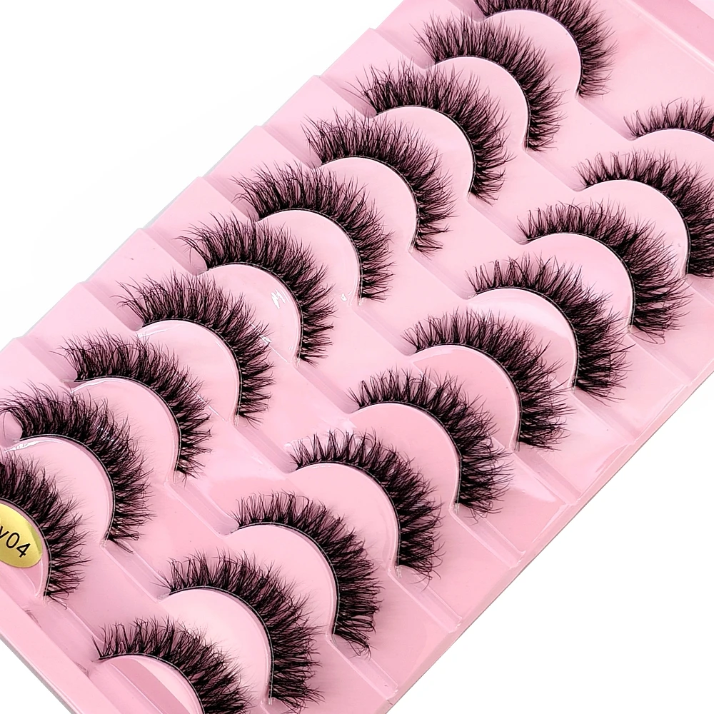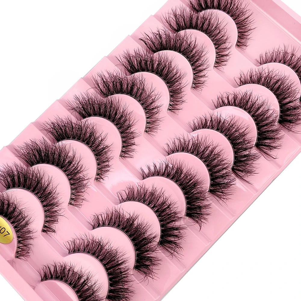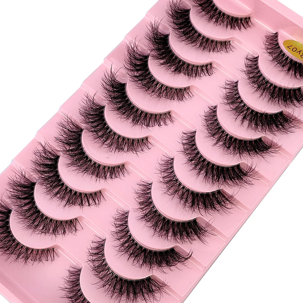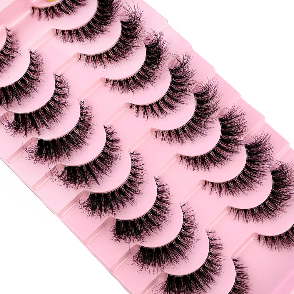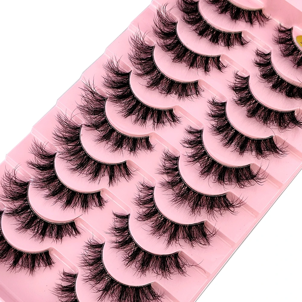 New 10 pairs 3D Mink Eyelashes Invisible Band Lashes Extension Natural False Eyelashes Cross Fairy Faux Big Eye Long Fake Lashes