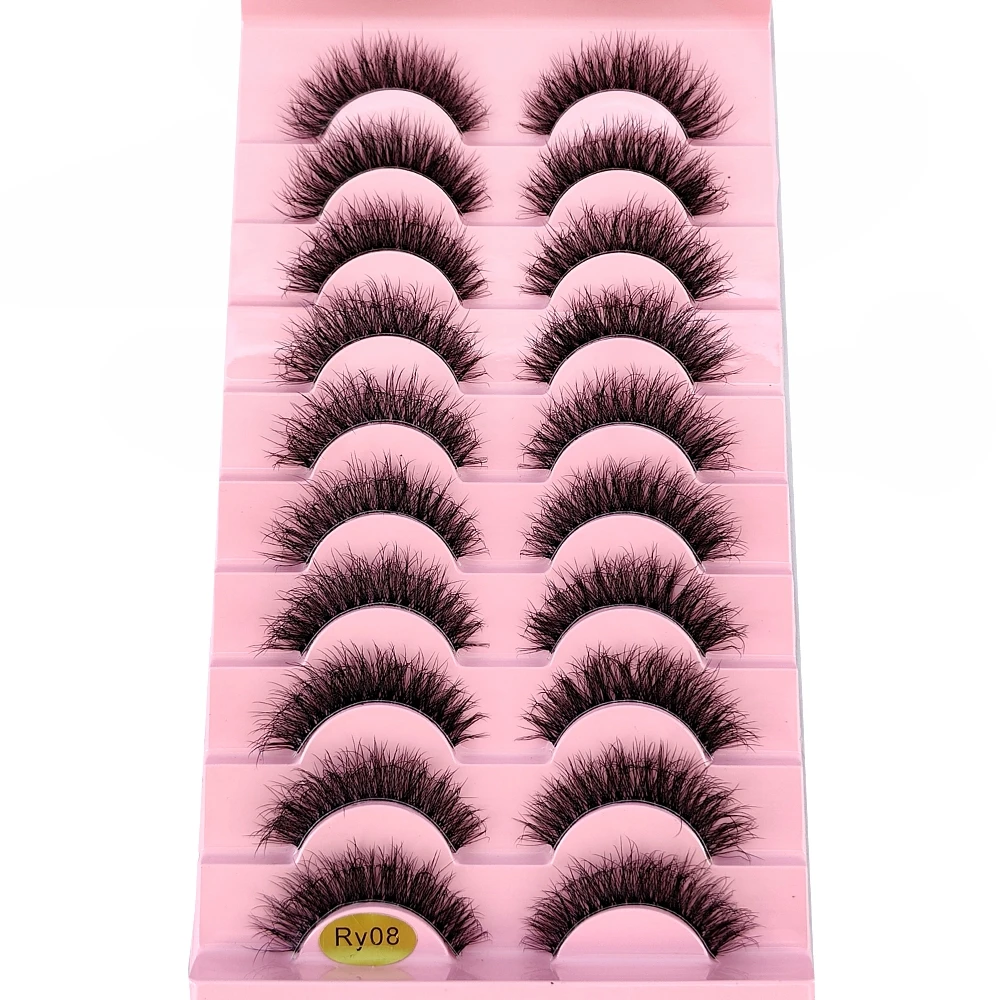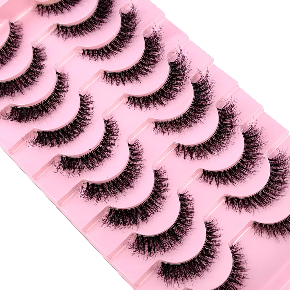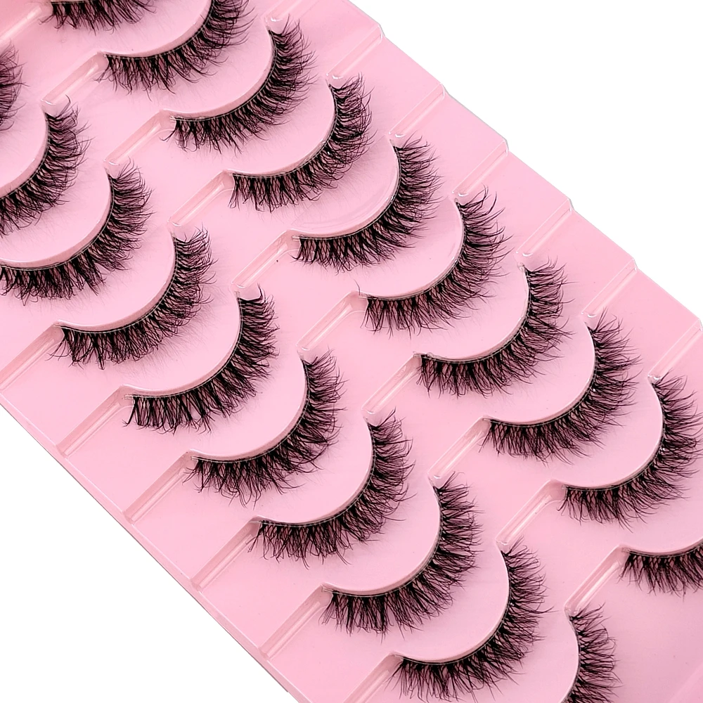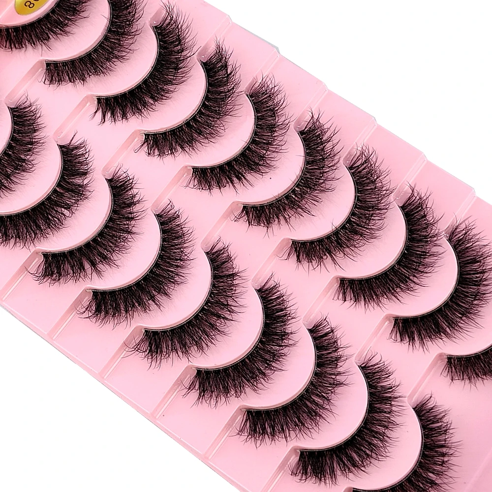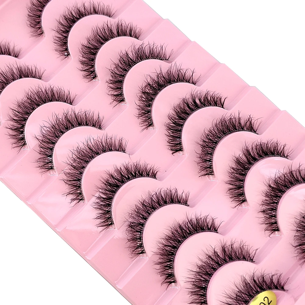 New 10 pairs 3D Mink Eyelashes Invisible Band Lashes Extension Natural False Eyelashes Cross Fairy Faux Big Eye Long Fake Lashes