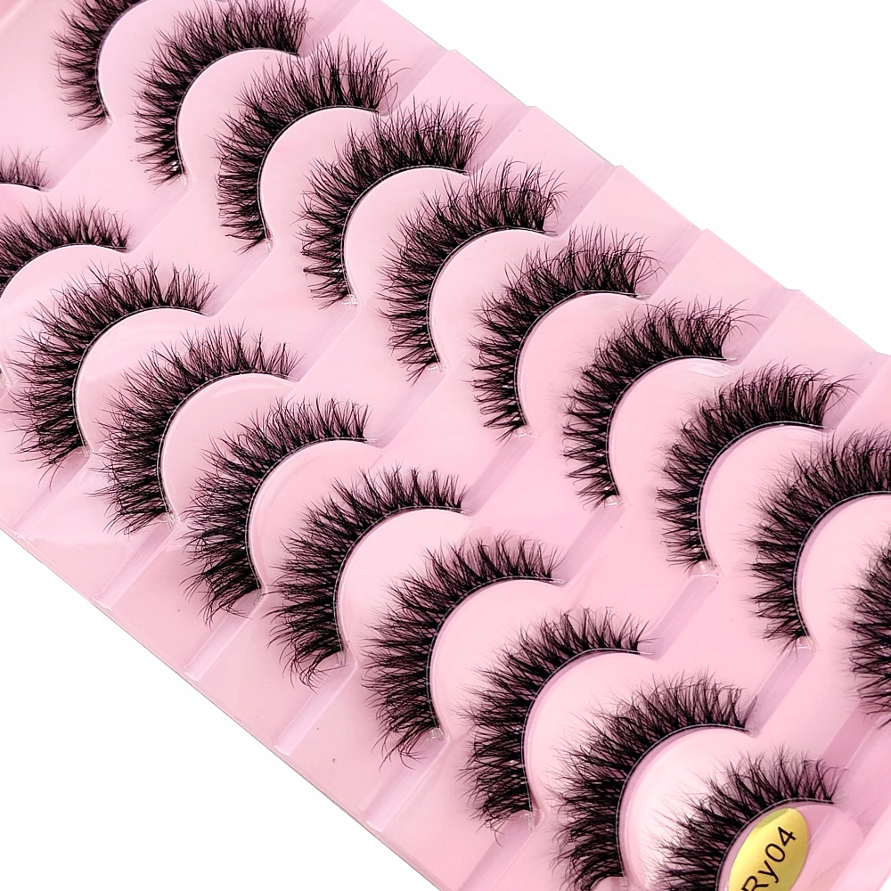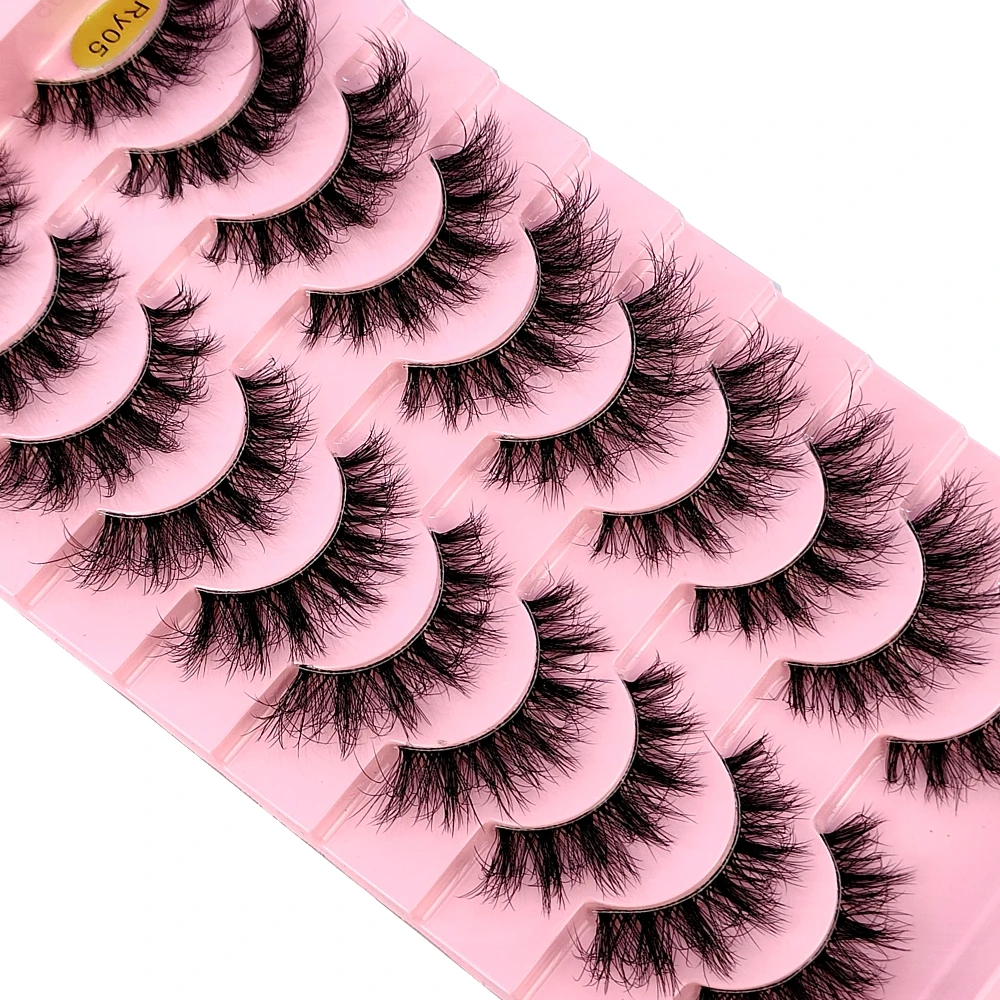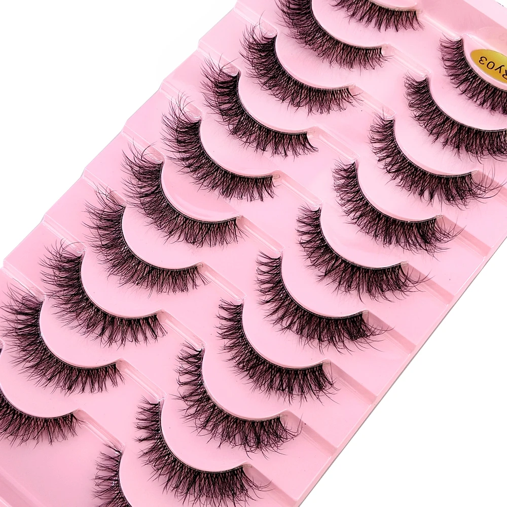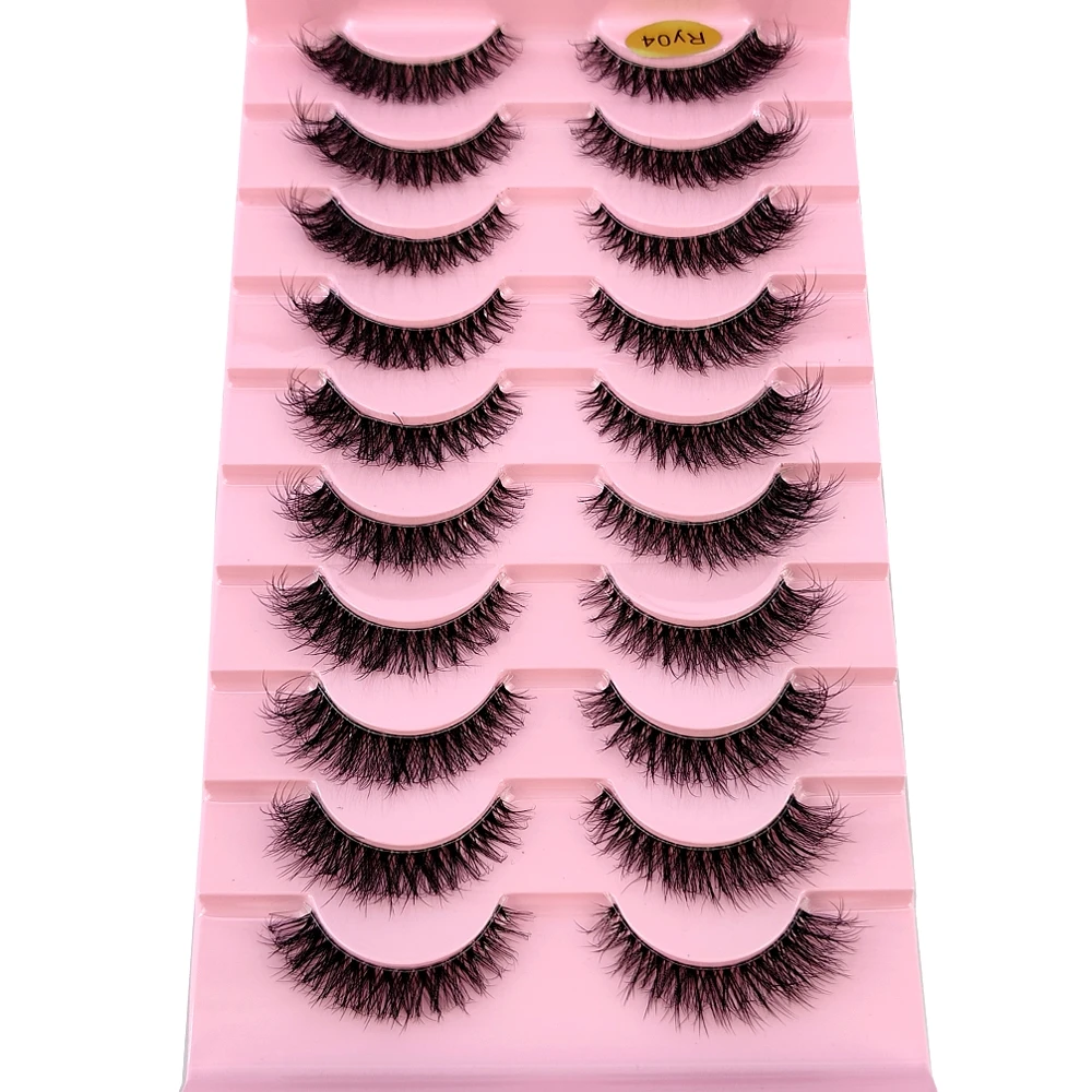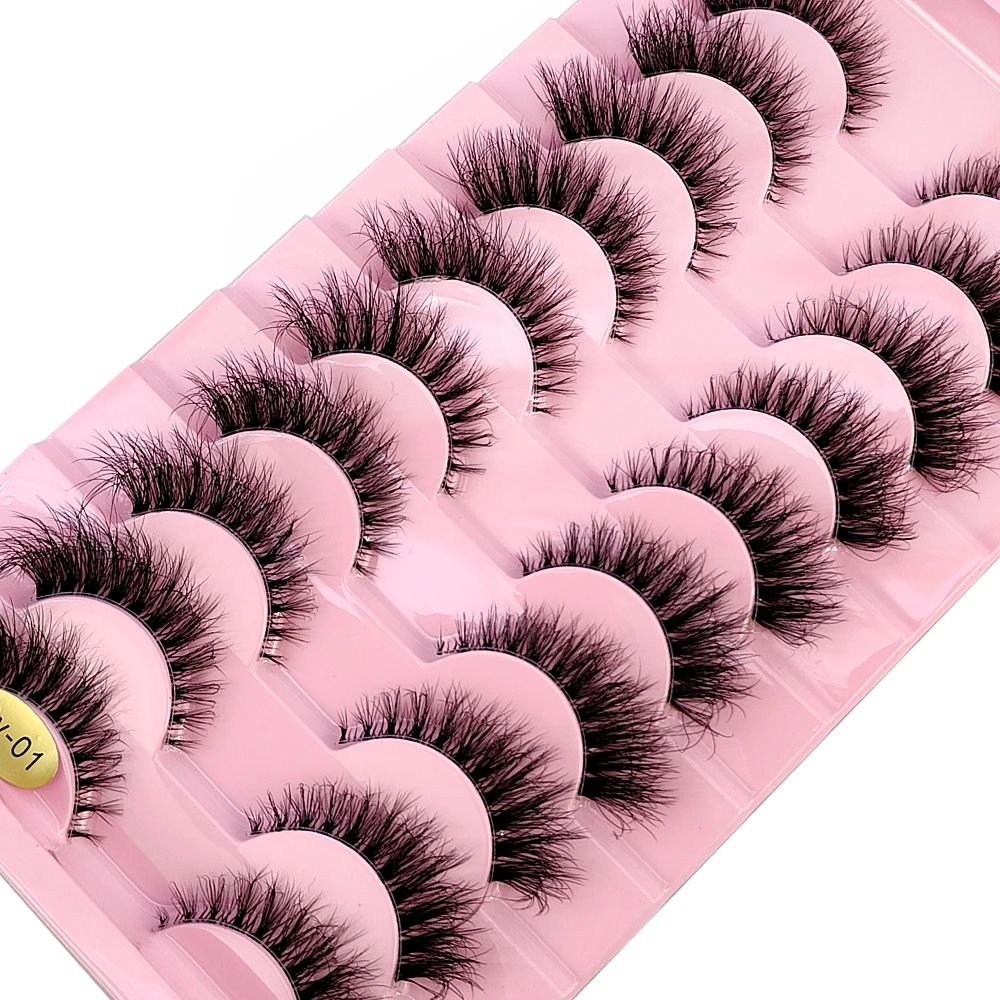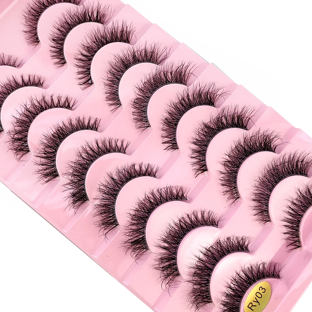 New 10 pairs 3D Mink Eyelashes Invisible Band Lashes Extension Natural False Eyelashes Cross Fairy Faux Big Eye Long Fake Lashes