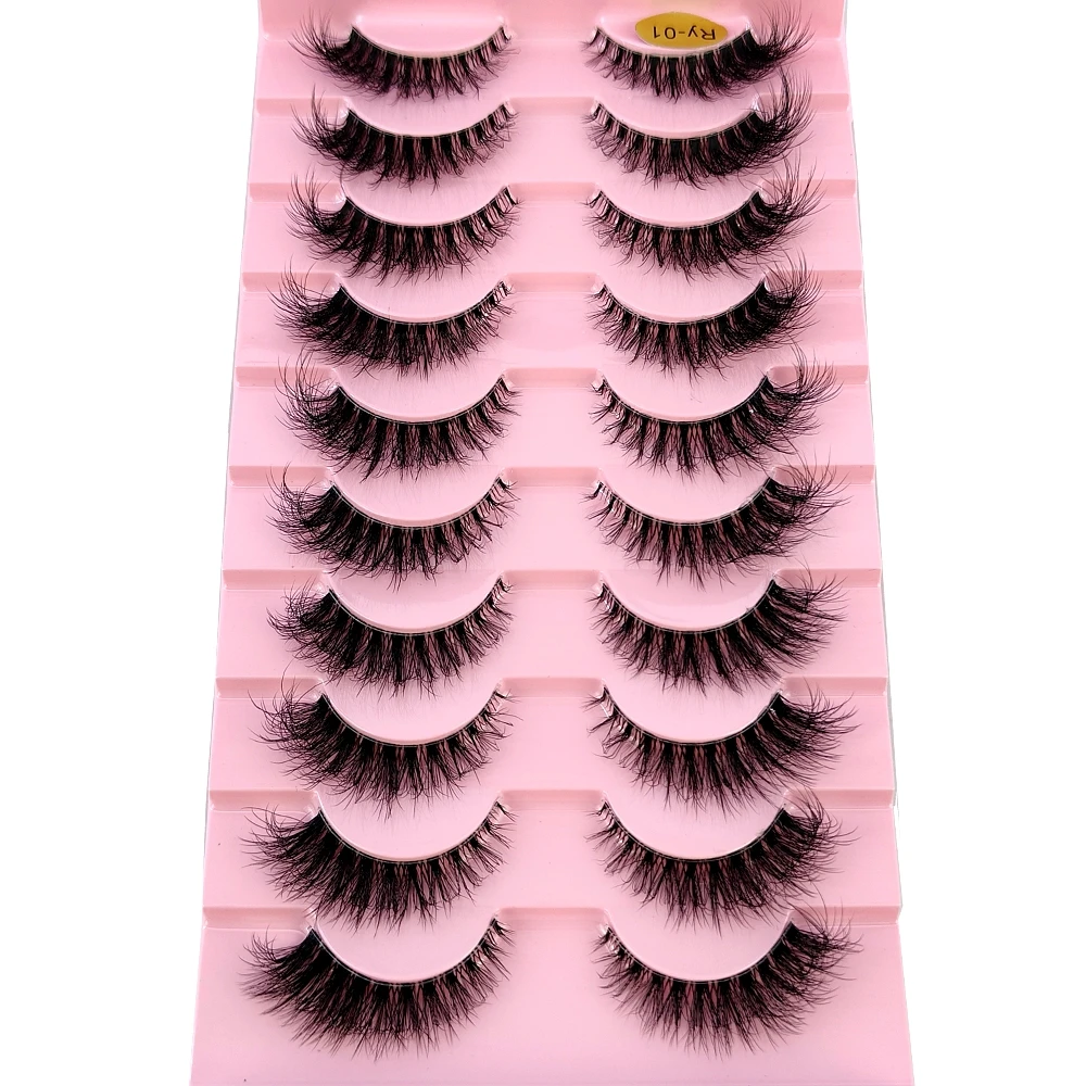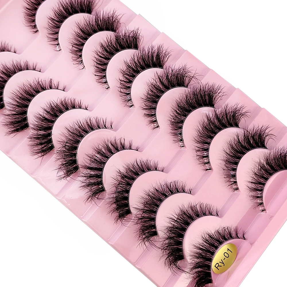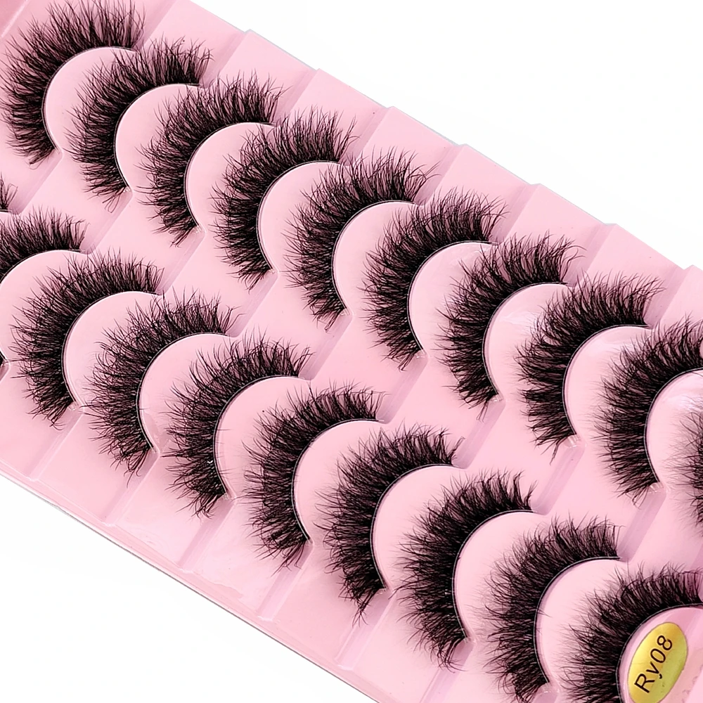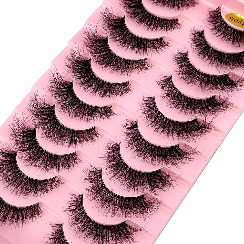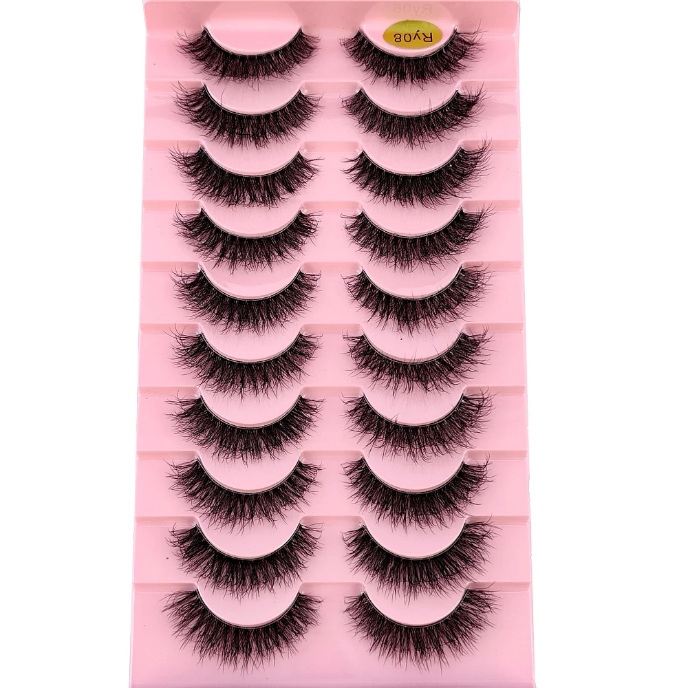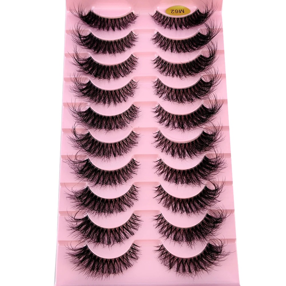 New 10 pairs 3D Mink Eyelashes Invisible Band Lashes Extension Natural False Eyelashes Cross Fairy Faux Big Eye Long Fake Lashes
