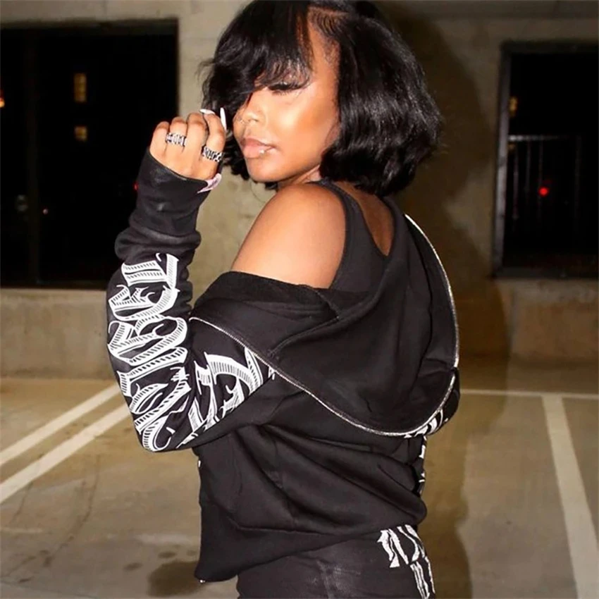 New 2023 Winter Letter Printed Zip Up Hoodie Streetwear Women Cyber Y2k Jackets Cardigan Gothic Punk Clothes Sweatshirts