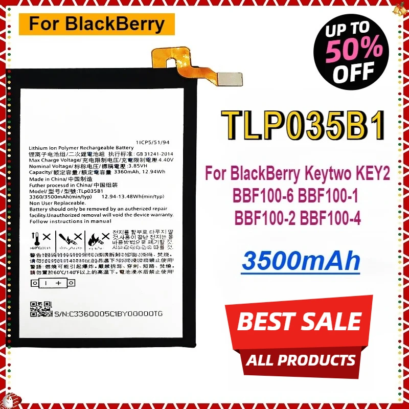 NEW 3500mAh TLP035B1 Mobile Phone Battery for BlackBerry Keytwo KEY2 BBF100-6 BBF100-1 BBF100-2 BBF100-4 Compatible Batteries