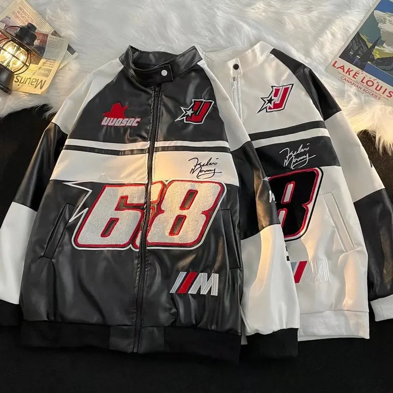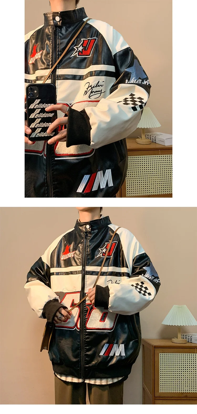 New American Pu Leather Jacket Spring Autumn Street Hip-Hop Pilot Motorcycle Suit Trendy Brand Loose Cool Casual Embroidered Top