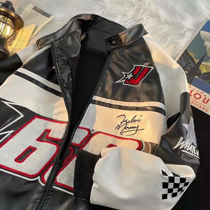 Be the first to review “New American Pu Leather Jacket Spring Autumn Street Hip-Hop Pilot Motorcycle Suit Trendy Brand Loose Cool Casual Embroidered Top”