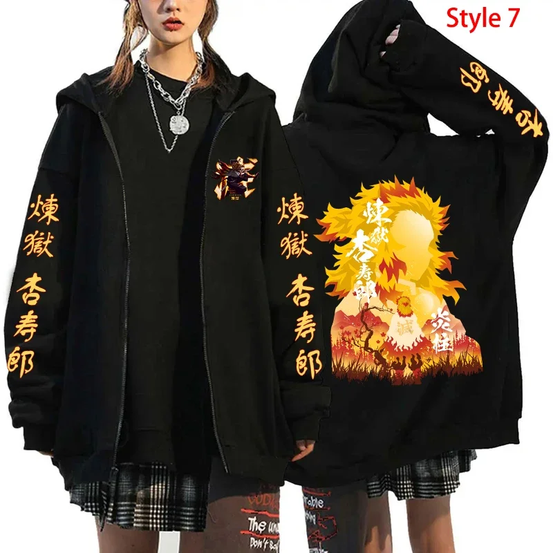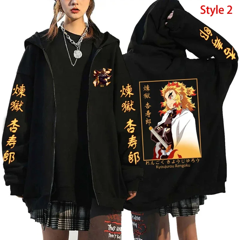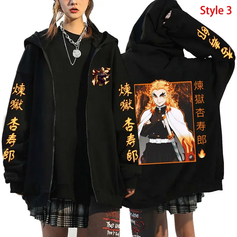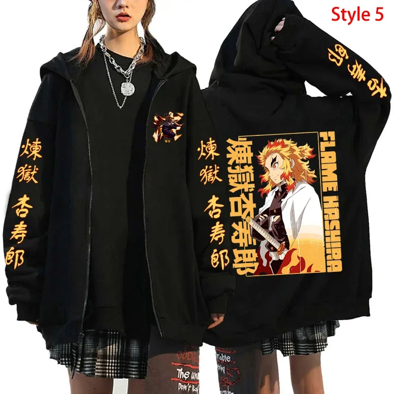 New Anime Rengoku Kyoujurou Printing Zipper Hoodie Women Men Autumn Winter Fashion Long Sleeve Pullover Casual Zipper Sweatshirt