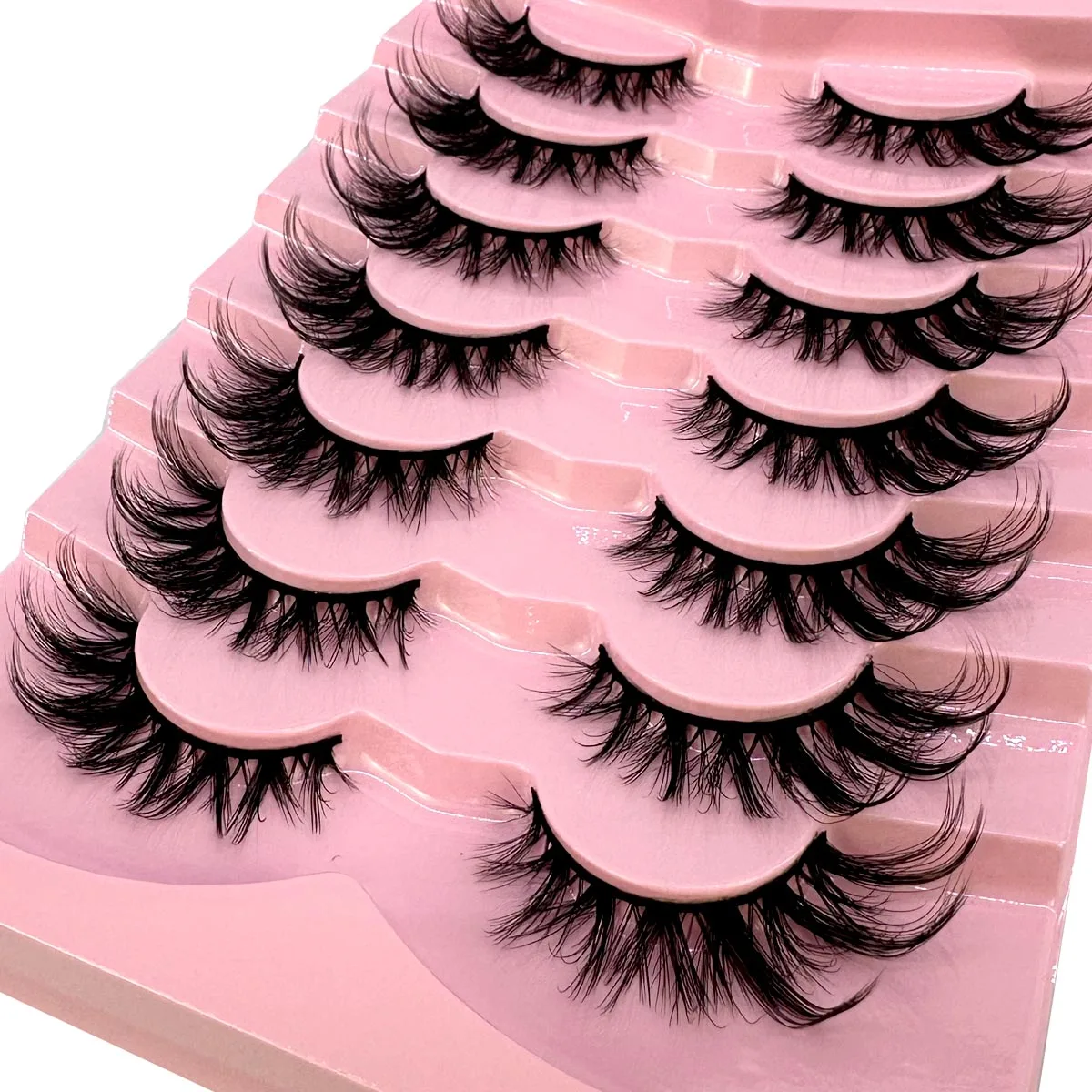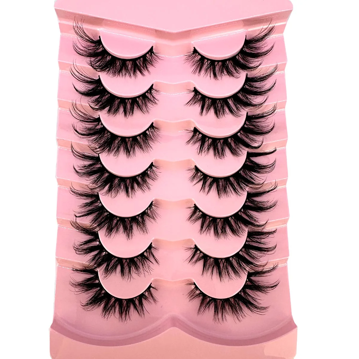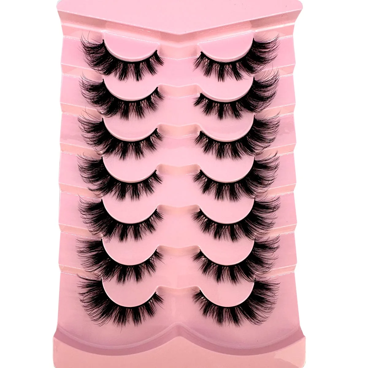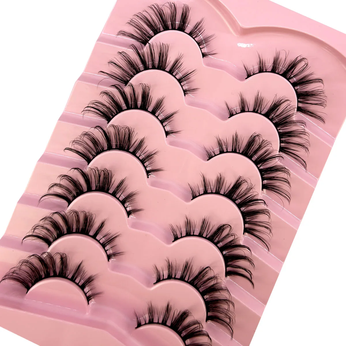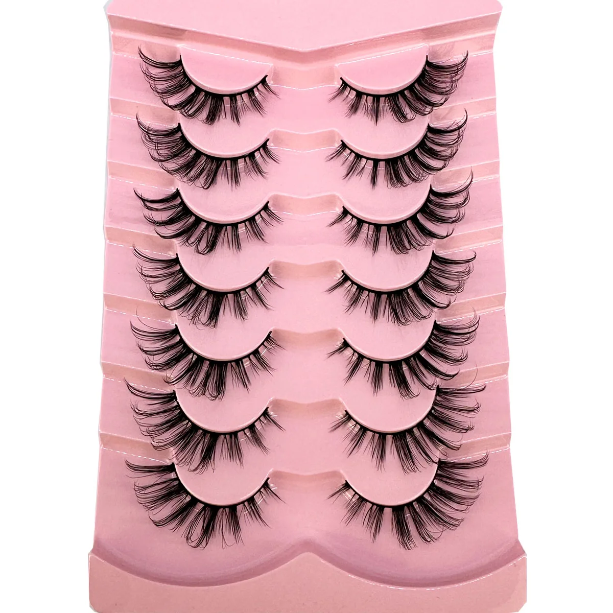 NEW Cat Eye Eyelashes 5D Natural False Lashes Fluffy Soft Cross 7pairs Manga Lashes Wispy Natural Eyelash Extension Makeup