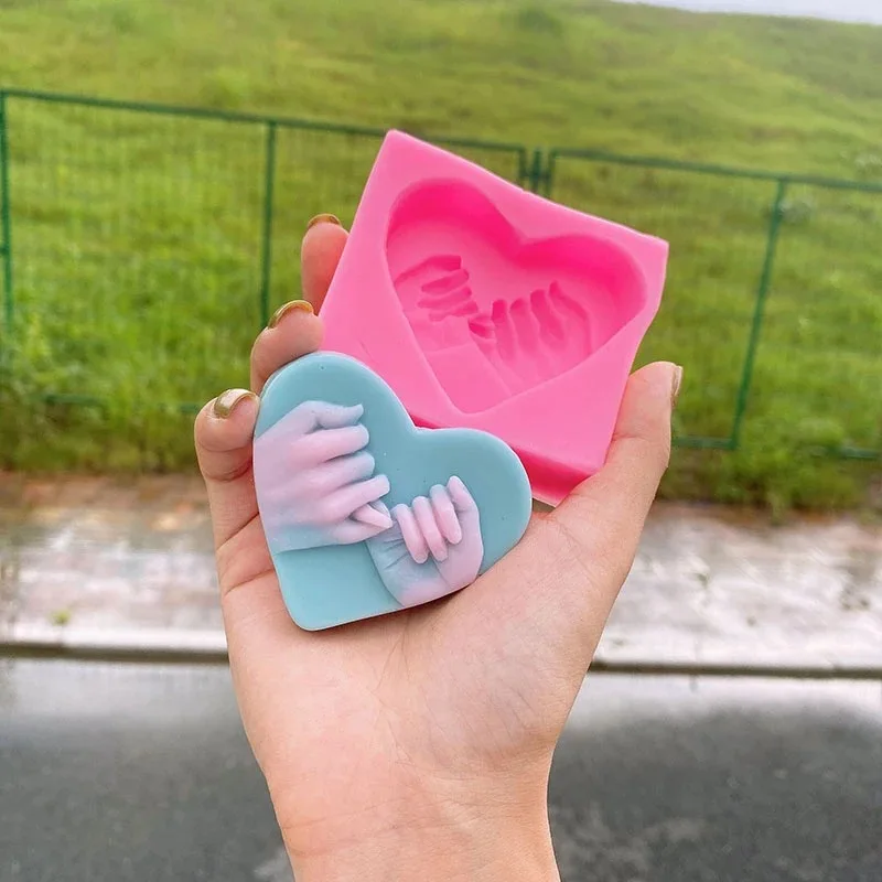 New DIY Hand In Hand Silicone Soap Mold Birthday Cake Decoration Baking Tool 3D Love Heart Chocolate Biscuit Candle Making Kit