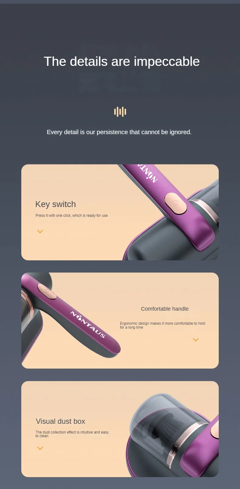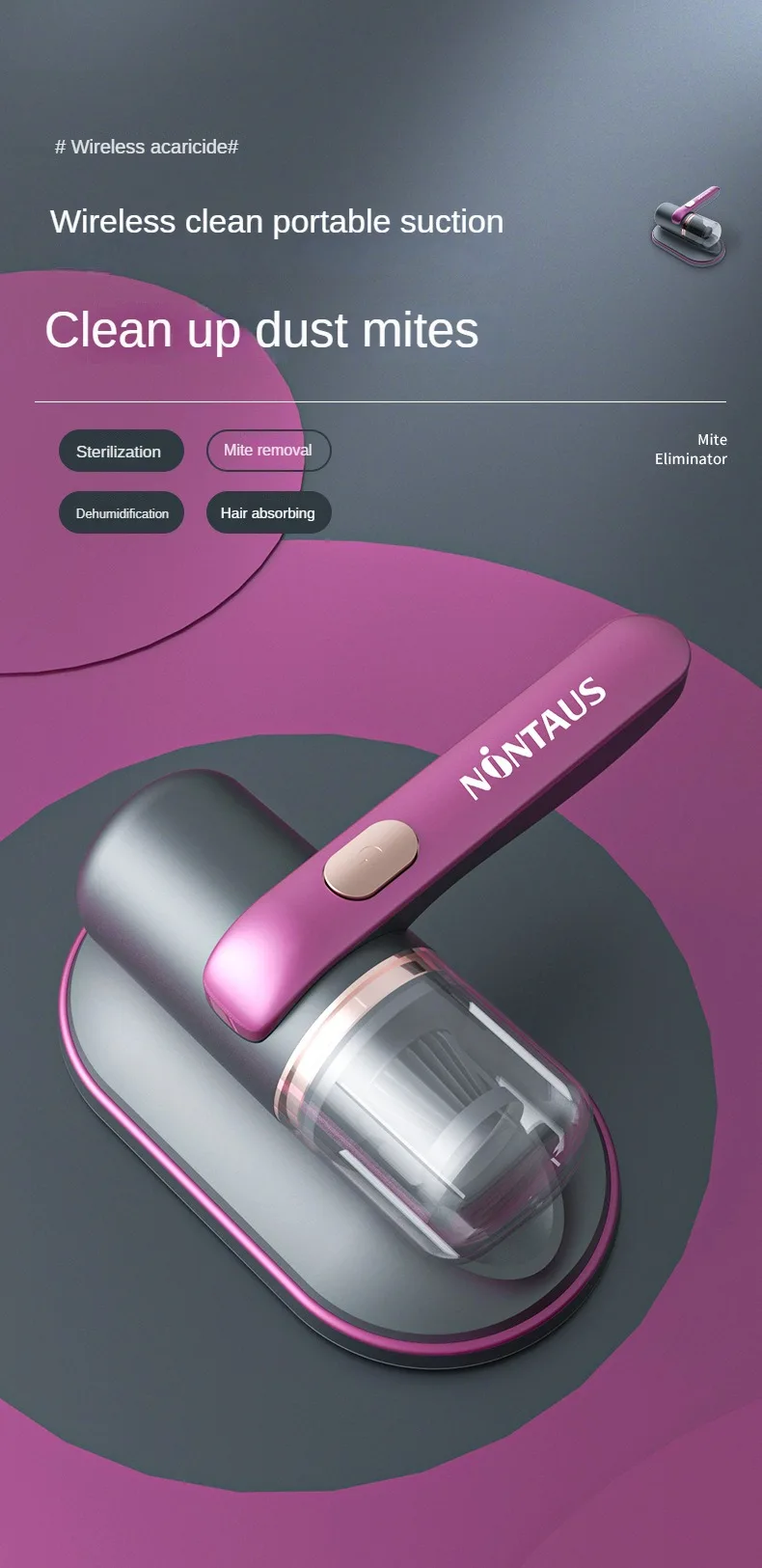 4.The dust mite vacuum can generate an ultra-strong suction to suck out the dirt, bacteria and mites, leaving not a trace of them.