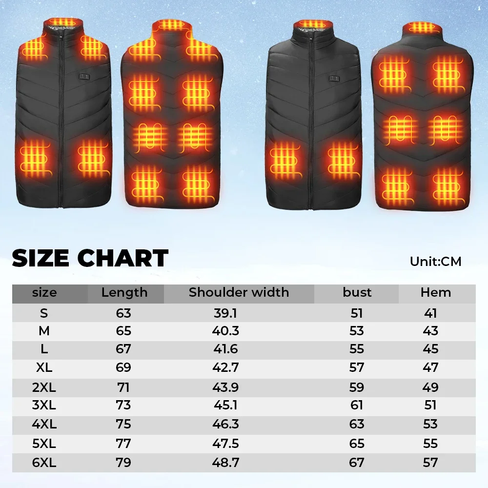 New Men Women Heated Vest Winter USB Electric Smart Heating Jackets Thermal Heat Clothing Plus size Hunting Coat