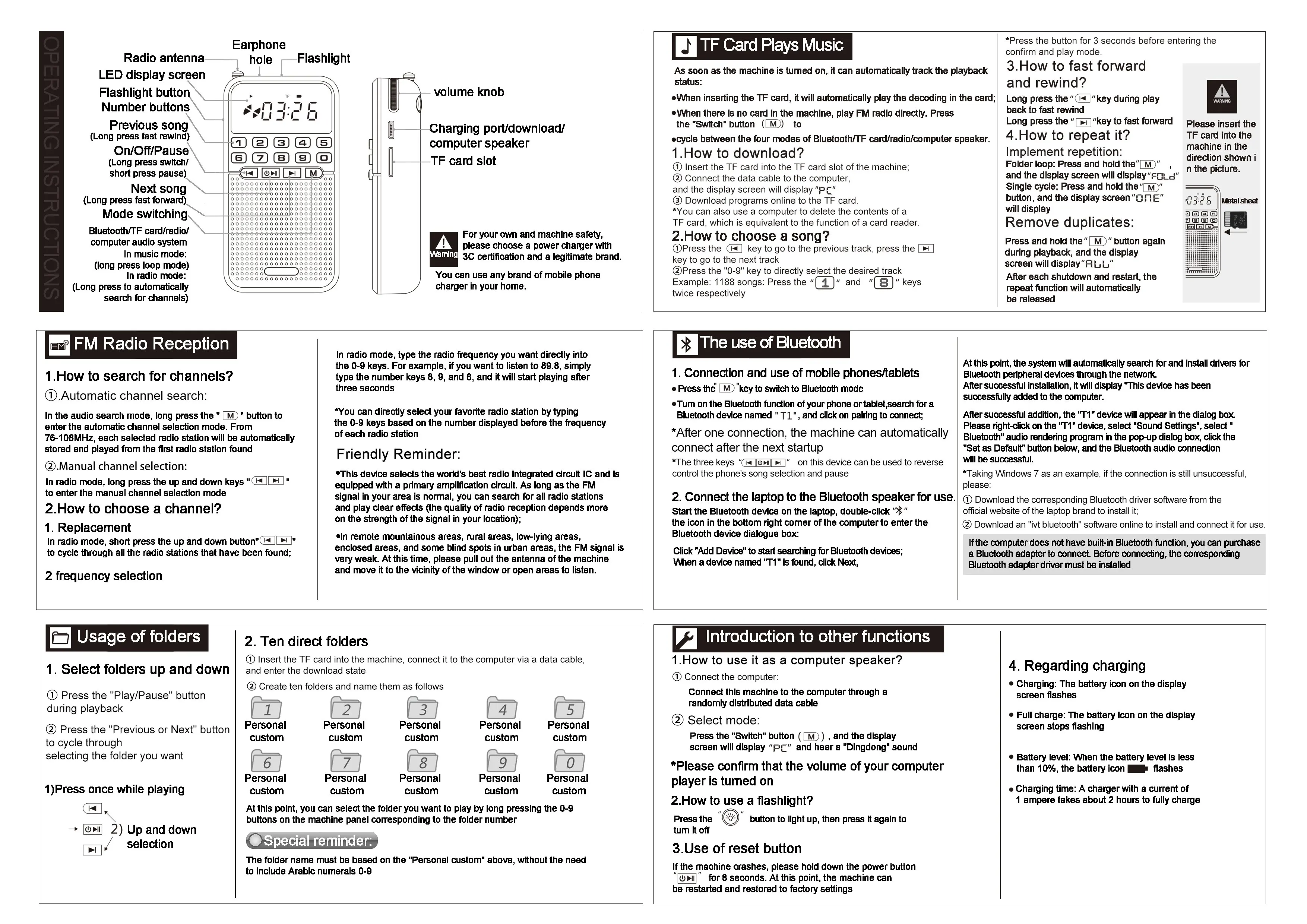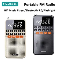 New Mini Portable FM Radio Dual Antenna Pocket Radio Receiver Bluetooth 5.0 Speaker TF Card Music Player with LED Flashlight